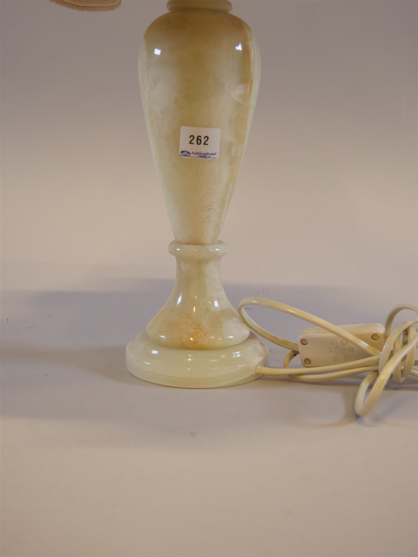 262. BORDSLAMPA. Alabaster. Höjd inkl skärm 65 cm.