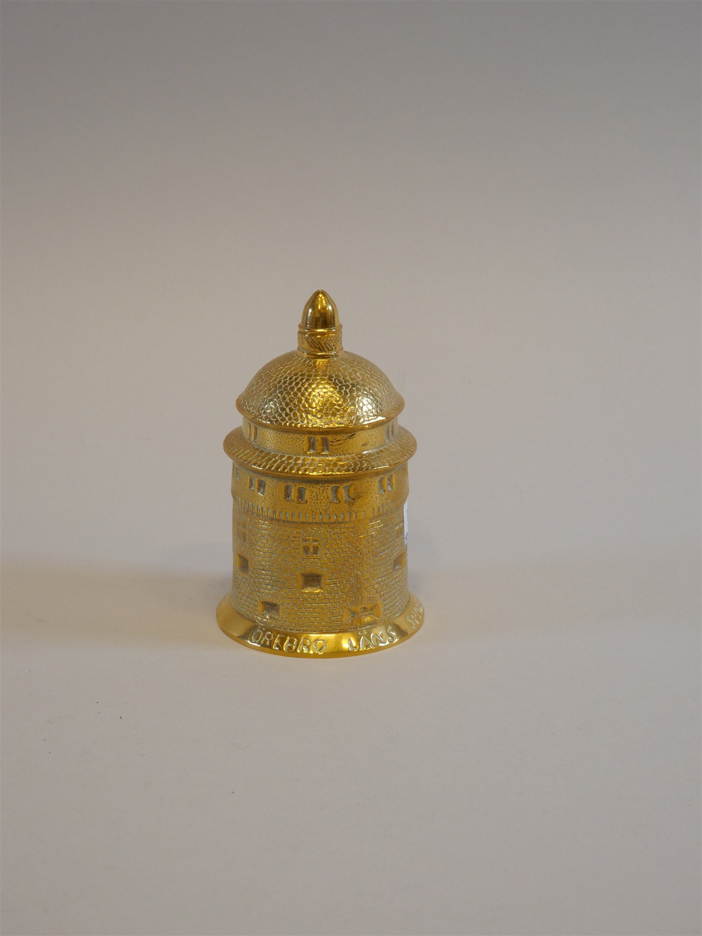 029. SPARBÖSSA. Örebro Läns Sparbank, mässing. Skruvlock. H 16,5 cm.