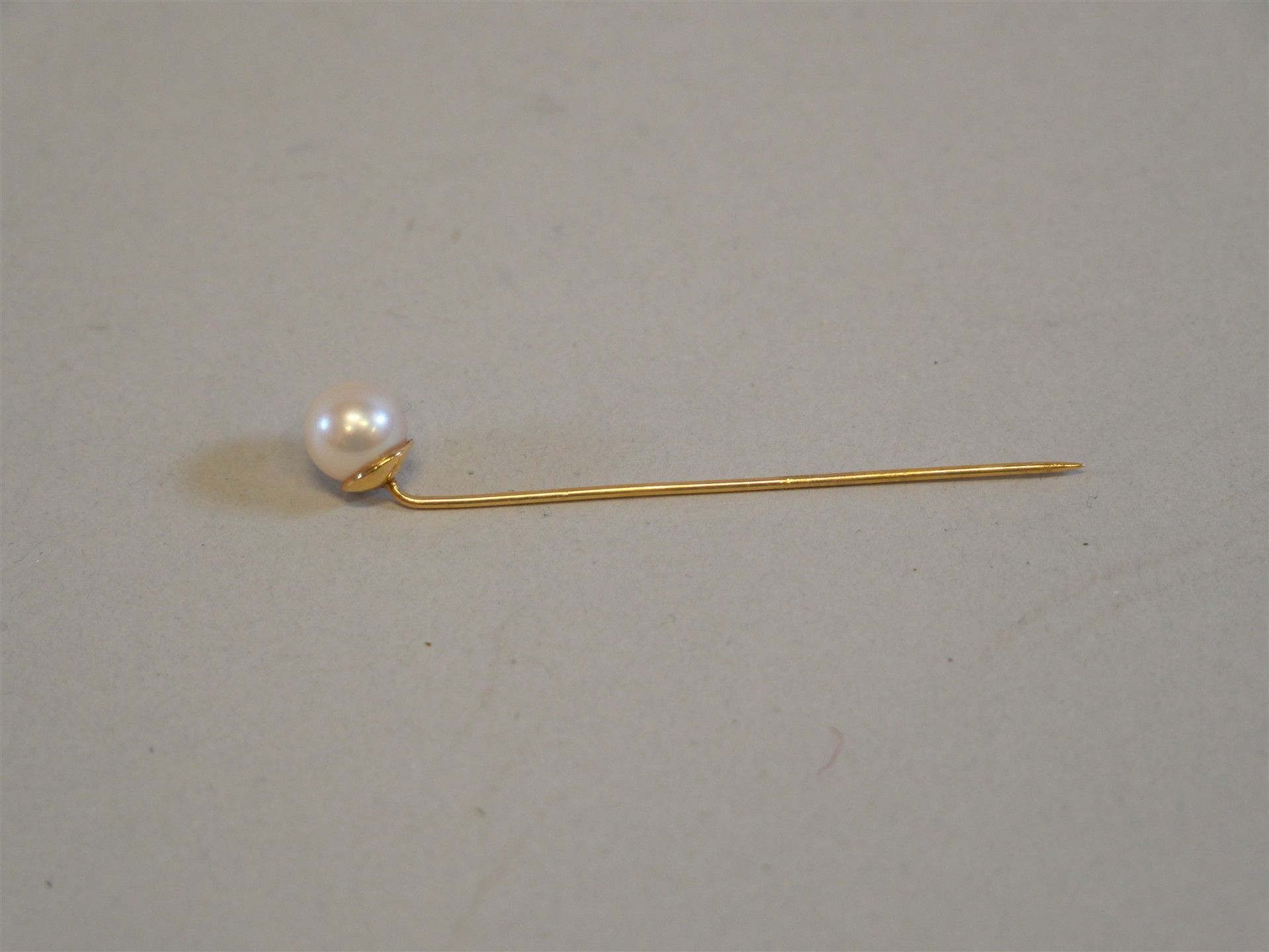 377. NÅL med pärla 18K. Bruttovikt 1,6 gram.