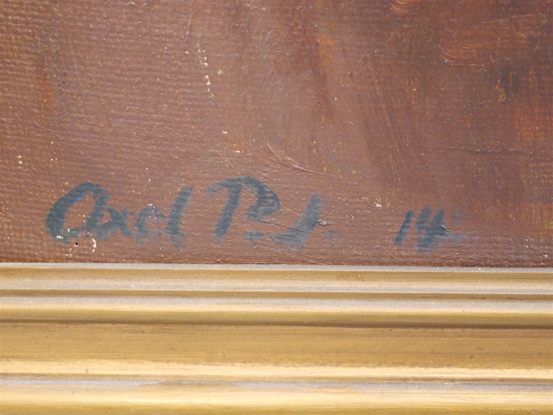 378. AXEL PEDER JENSEN. Oljemålning, sign Axel PJ. Duk 38 x 46 cm .