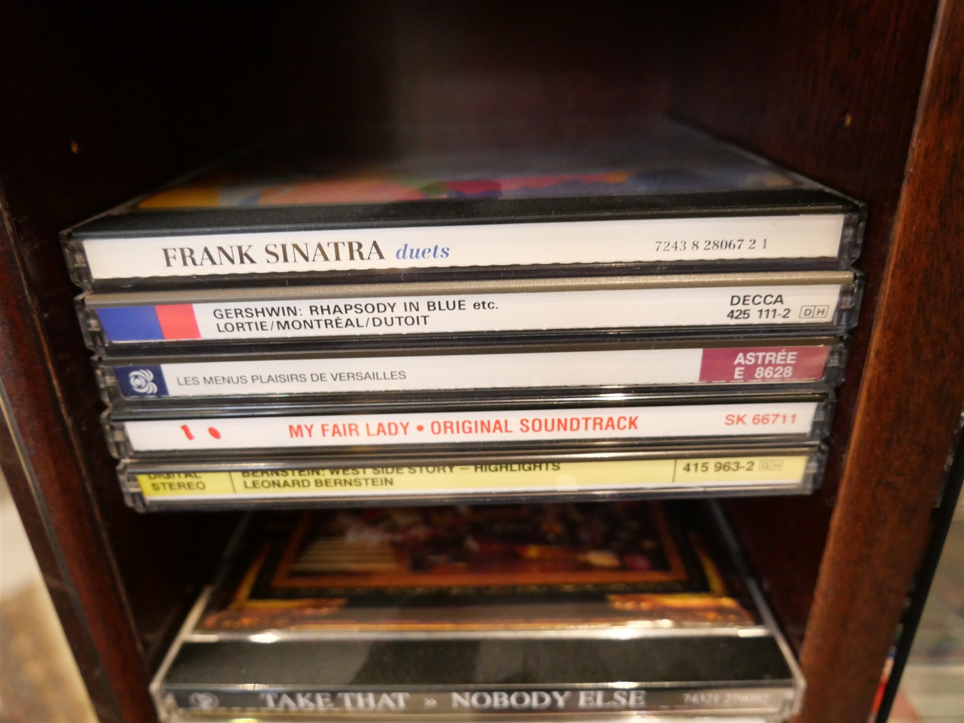 049. CD-STÄLL med skivor. H 112 cm. B 35 cm. DJ 22 cm.