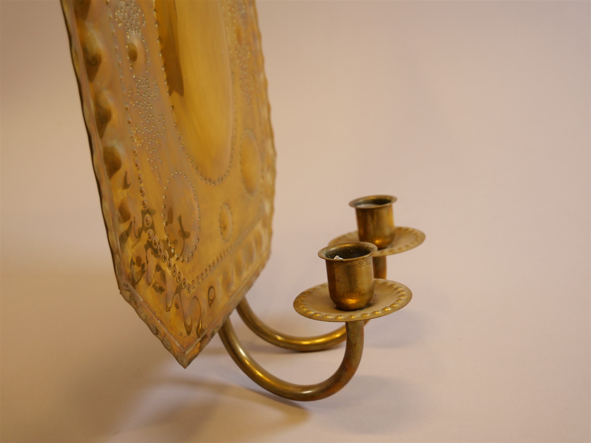122. LJUSPLÅTAR 1 par, mässing. H 53 cm .B 27 cm.