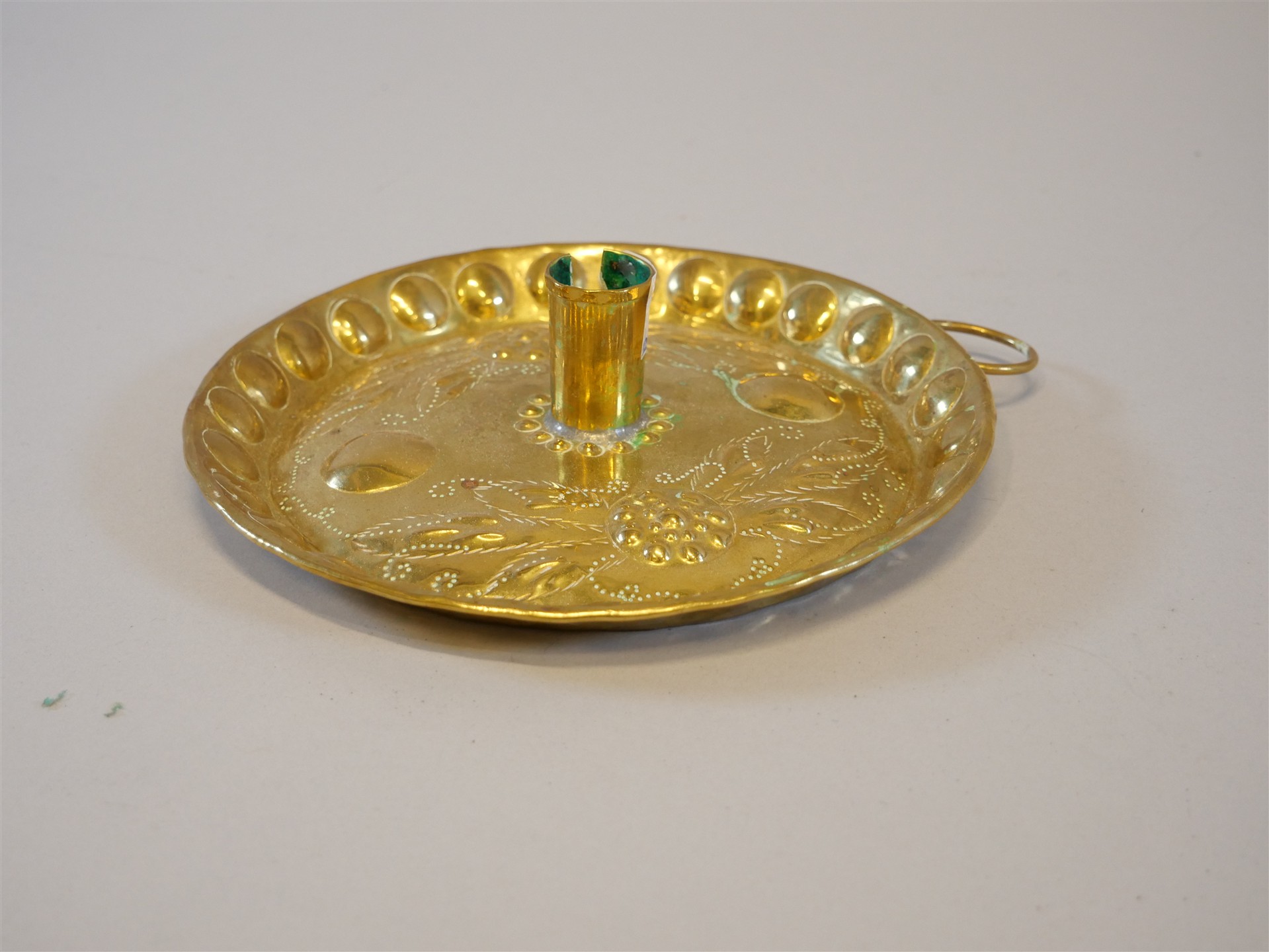 142. LJUSPLÅT, mässing. Diam 20 cm.