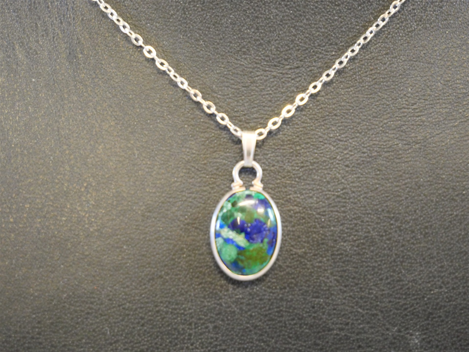 208. HALSBAND, Sterling silver med Azurit-Malakit. L 44 cm.