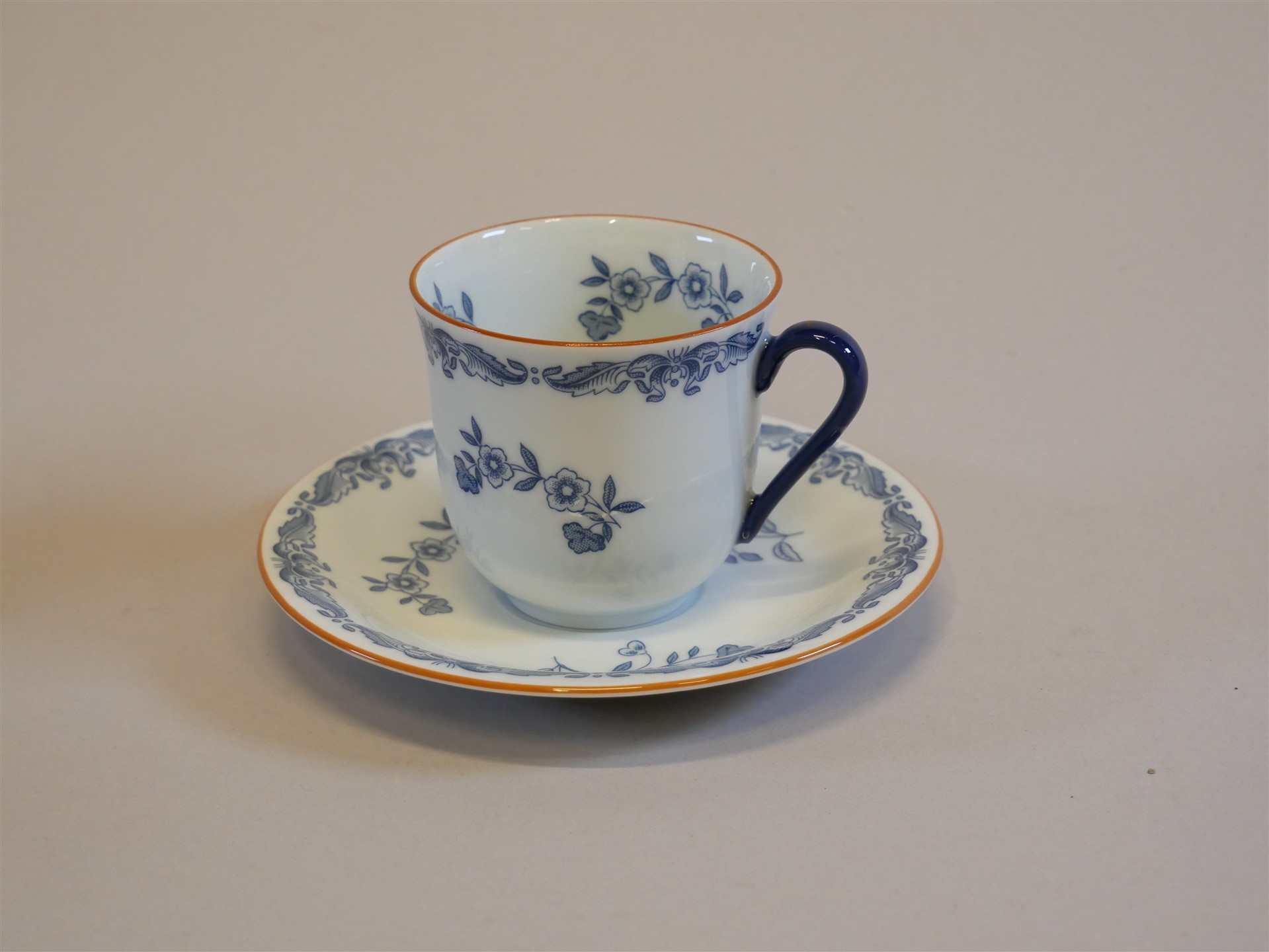 214. OSTINDIA, Rörstrand. Kaffekoppar 8 st, skål och gräddkanna. Kaffekopparnas höjd 7 cm.