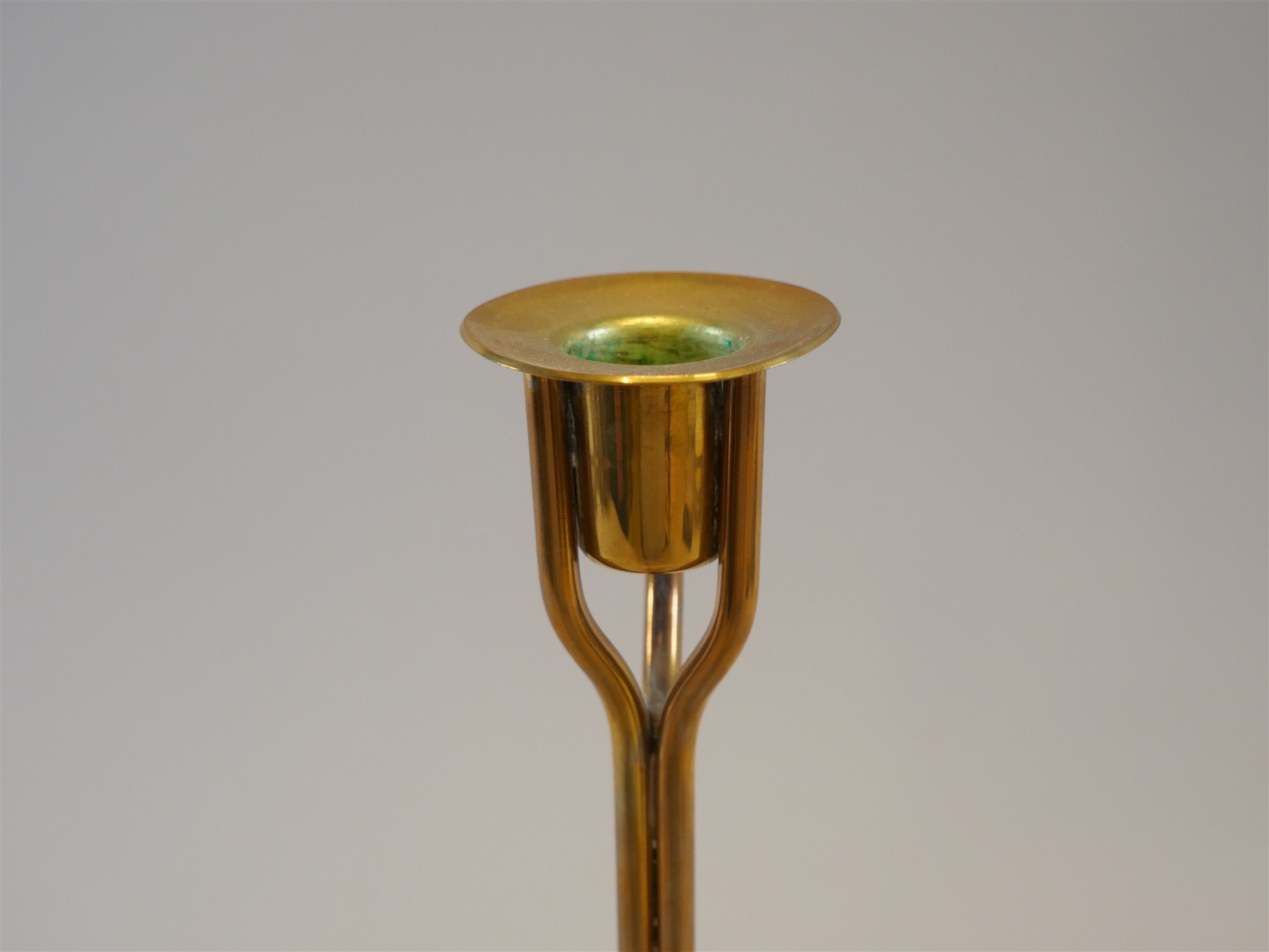 256. FIRMA SVENSKT TENN. Ljusstakar "Klöver" 2 st Josef Frank, mässing. H 31 resp 36 cm.
