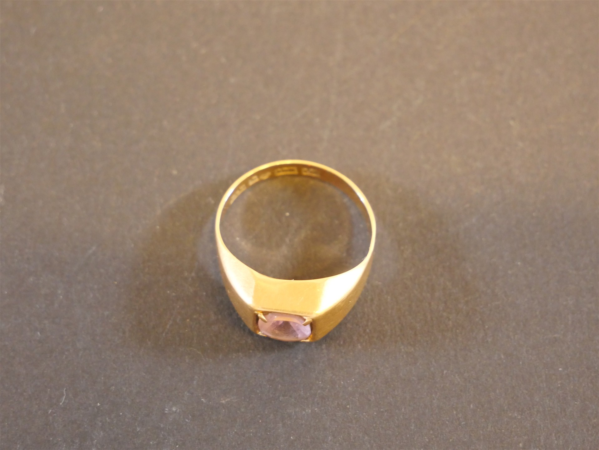 285. RING med sten 18K. Ringens mått ca 17,5 mm. Bruttovikt 2,6 gram.