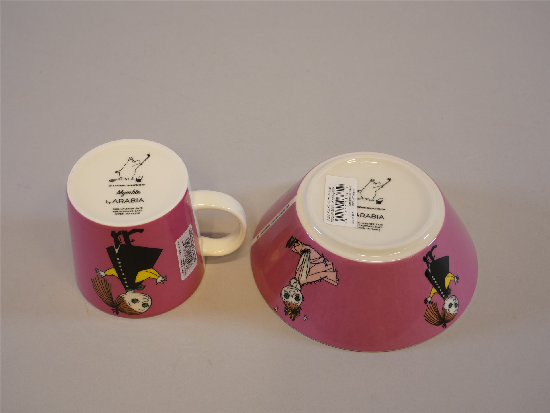 371. ARABIA. Mumin. Mugg och skållrik. H 8 resp 5,5 cm.