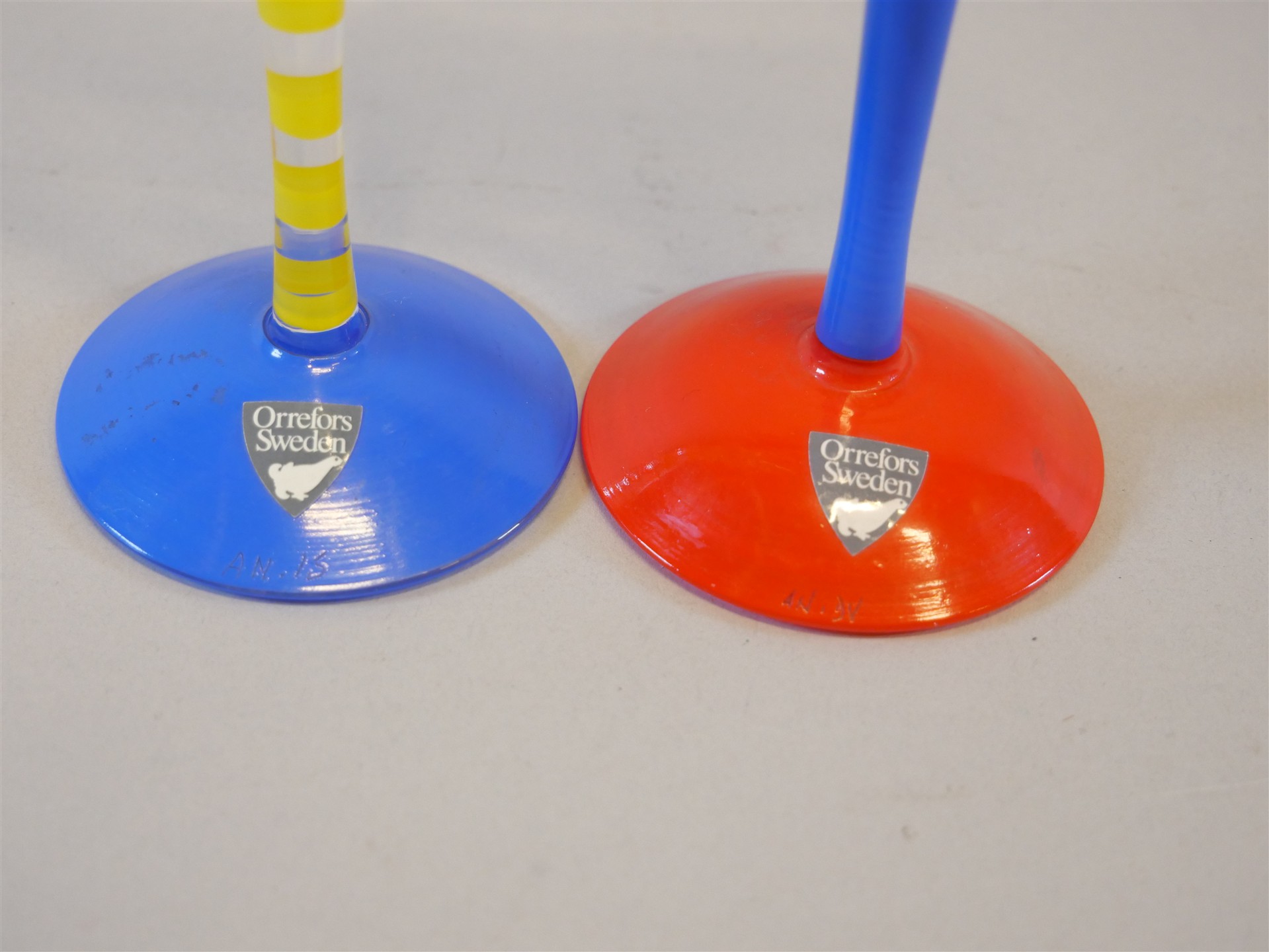 388. ANNE NILSSON. Orrefors. Snapsglas 2 st "Clown" H 19 cm.
