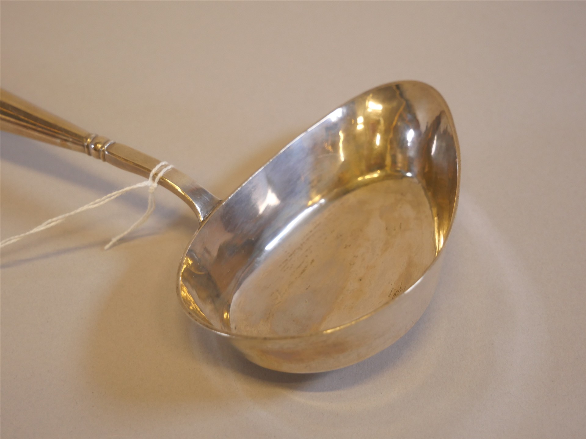 004. SOPPSLEV, silver med träskaft. Y4. L. 41 cm. Bruttovikt 114 gram.