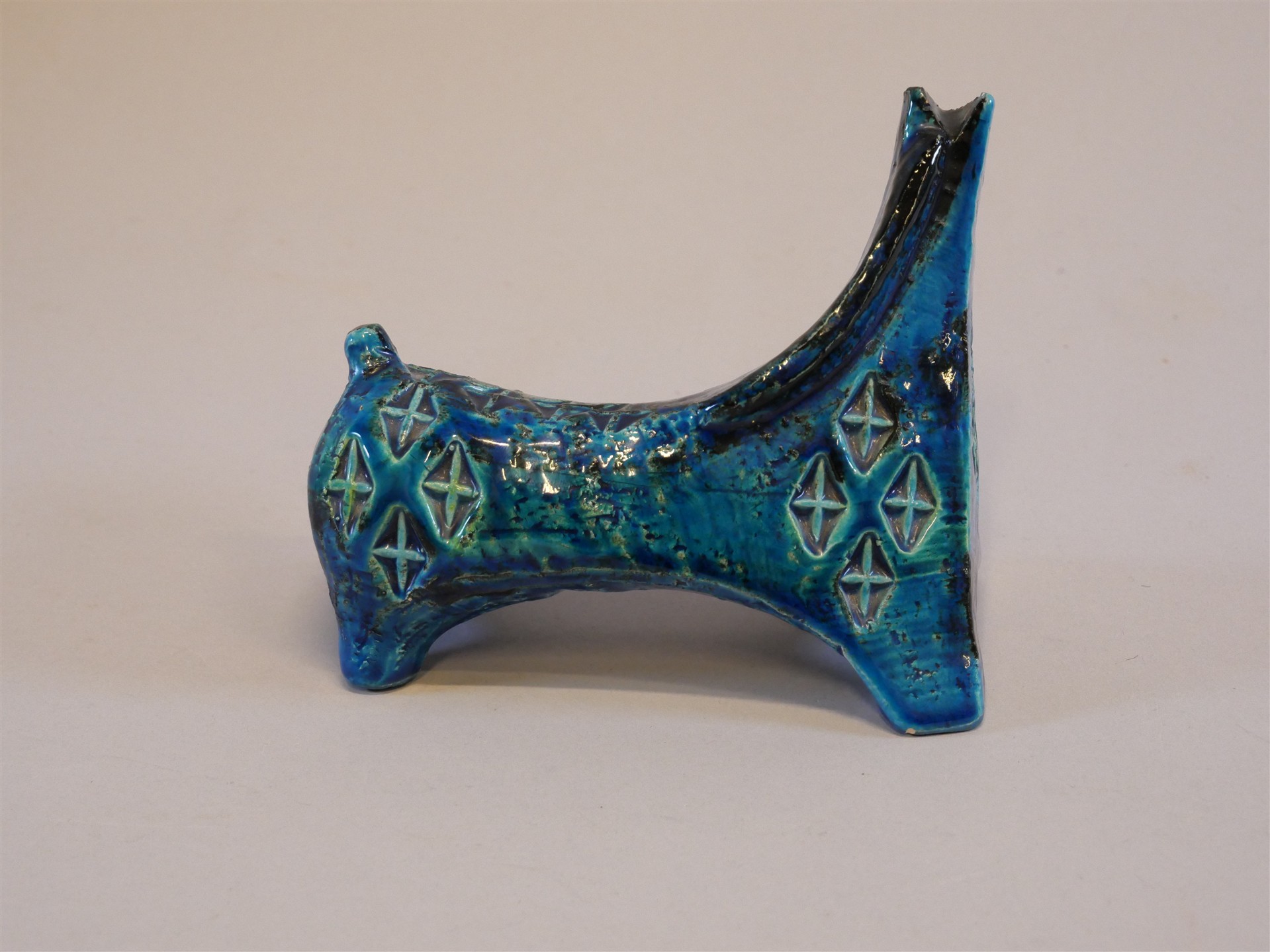 478. ALDO LONDI. Figurin, stengods. "Häst", Rimini blue, Bitossi, Italien. 1900-talets andra hälft. H. 12,5 cm. L. 17 cm.