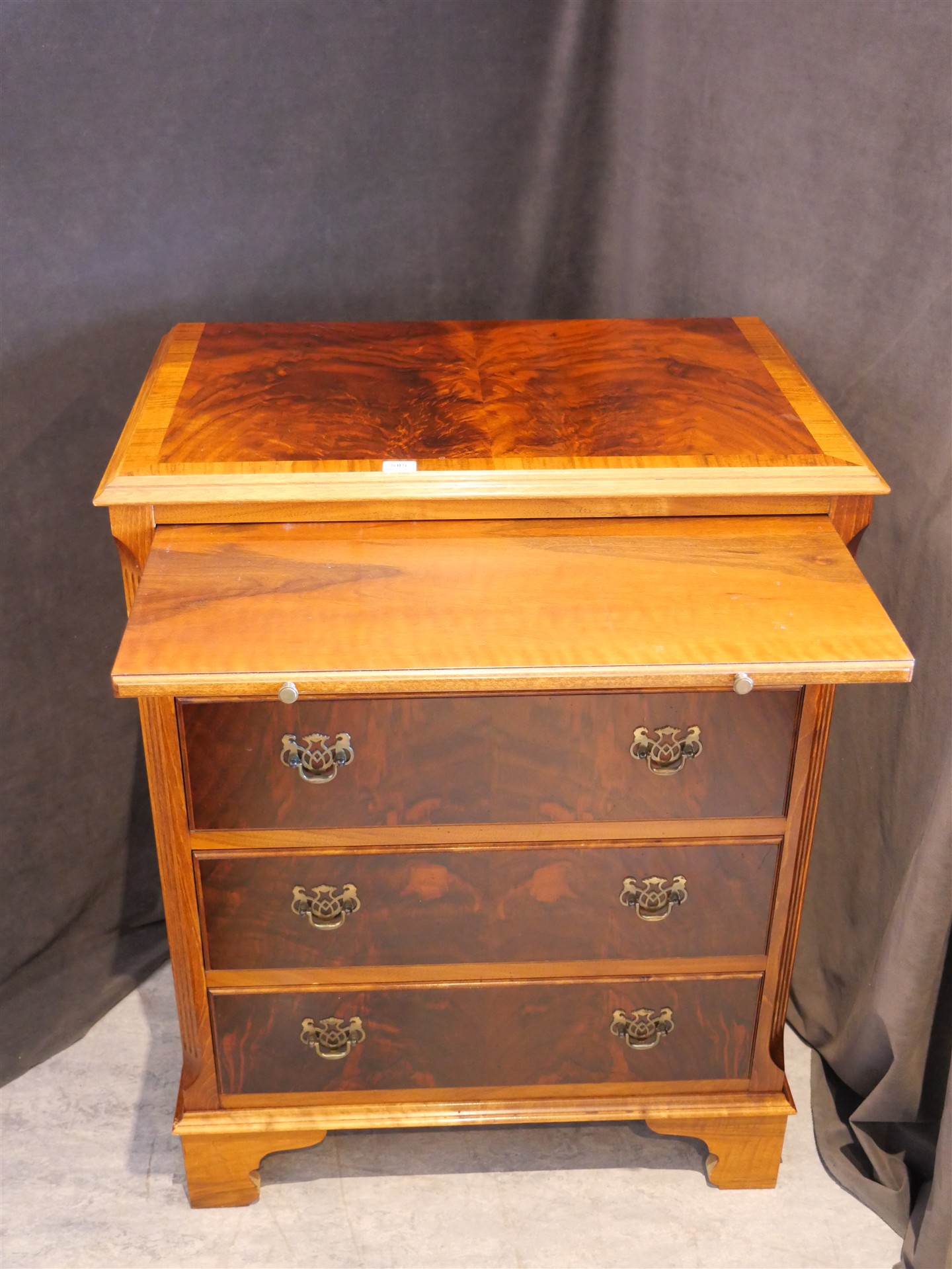 505. BYRÅ 4-lådig, idegran, engelsk stil. H 83,5 cm. B 63 cm. Dj 41 cm.