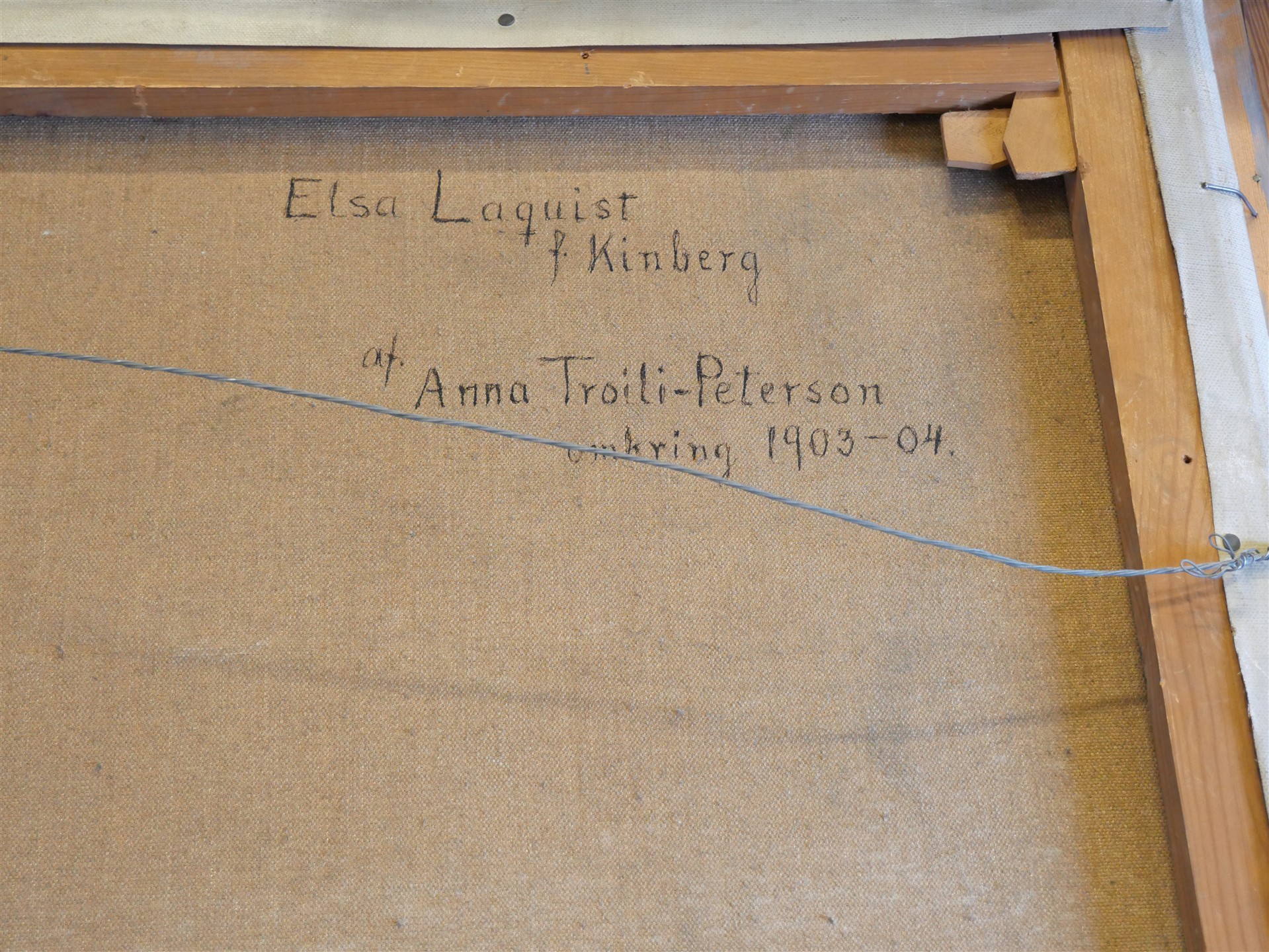 539. ANNA TROILI-PETERSON. Oljemålning. A tergo Elsa Laquist f. Kindberg af. Anna Troili-Peterson omkring 1903/04. Duk 120 x 93 cm.