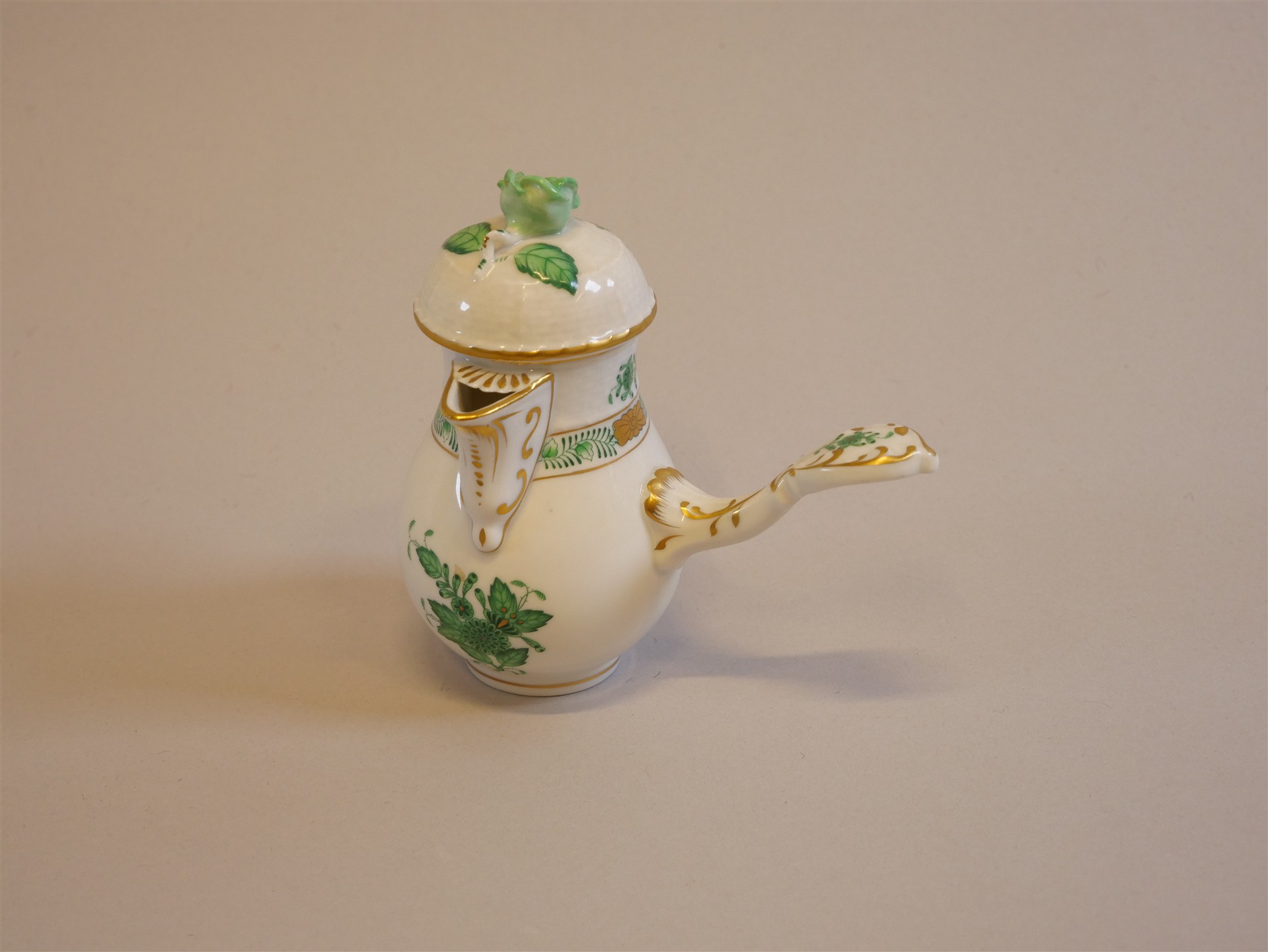 067. HERENED 7 delar. Småfat 3 st. Skålar 2 st Kanna & Vas. Vasens höjd 11,5, cm.