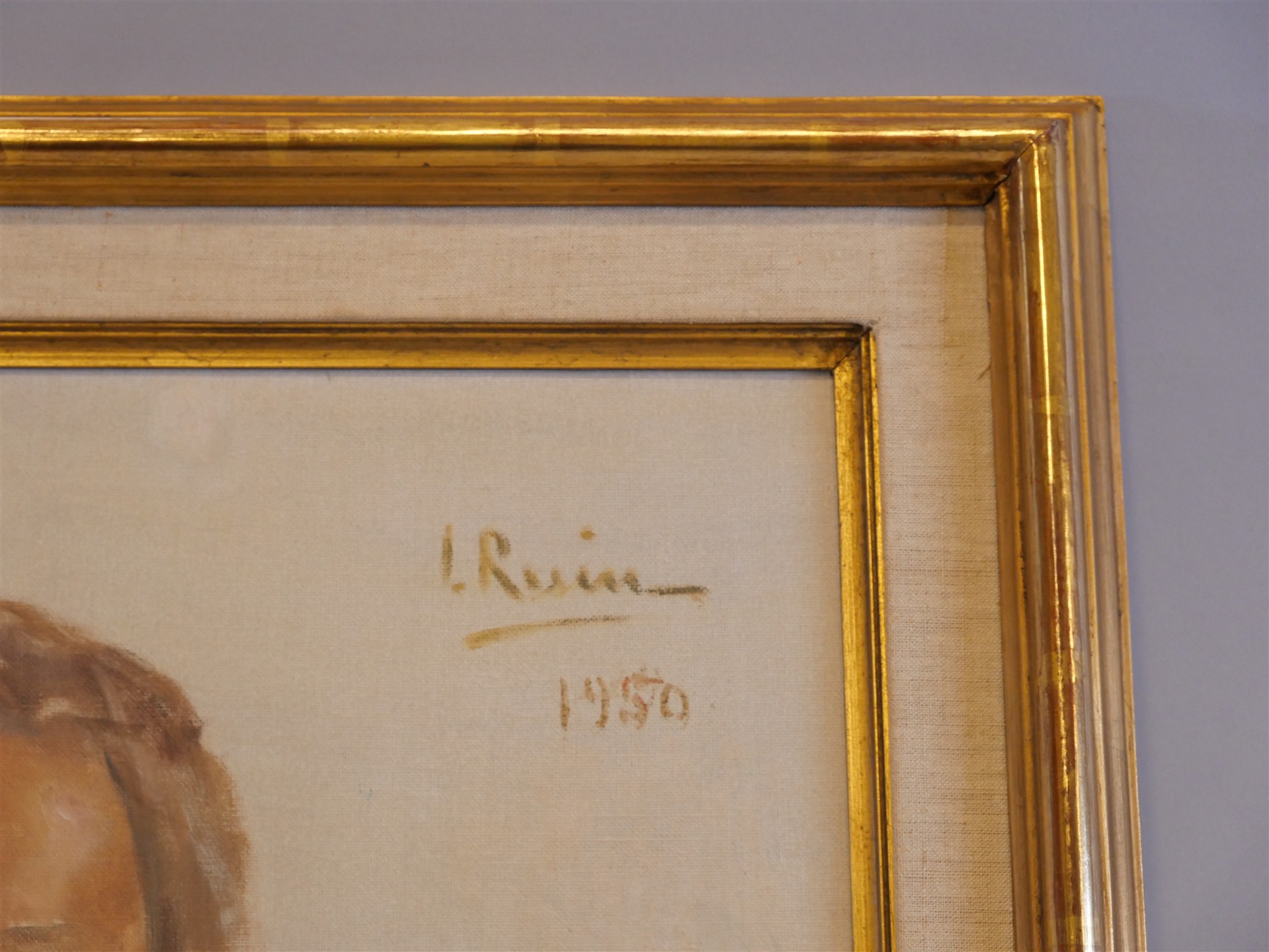 205. INGRID RUIN. Oljemålning. Signerad: I. Ruin 1950. Ramen med mindre skador. Duk. 54x48