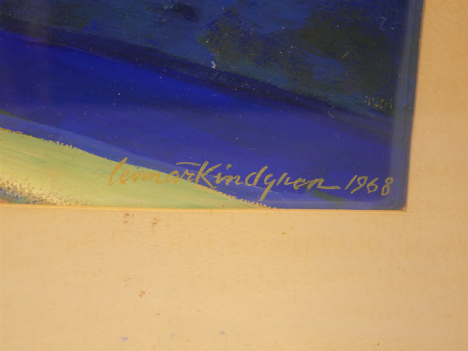 297. LENNART KINDGREN. Akvarell, sign Lennart Kindgren. Tavlans mått 47 x 61,5 cm. Passepartoue med små fuktfläckar.