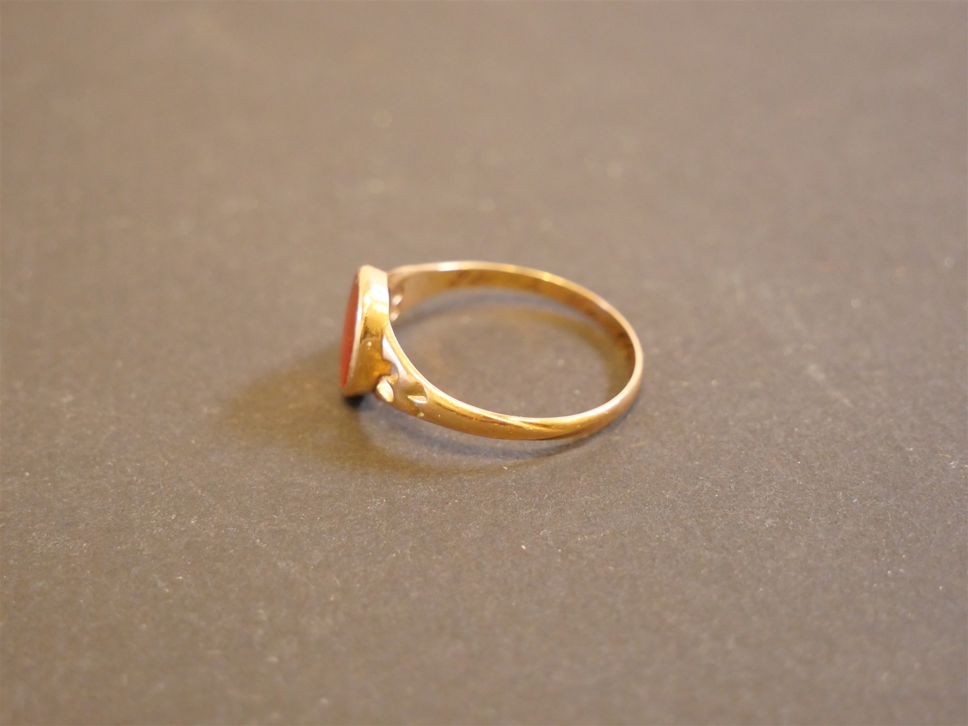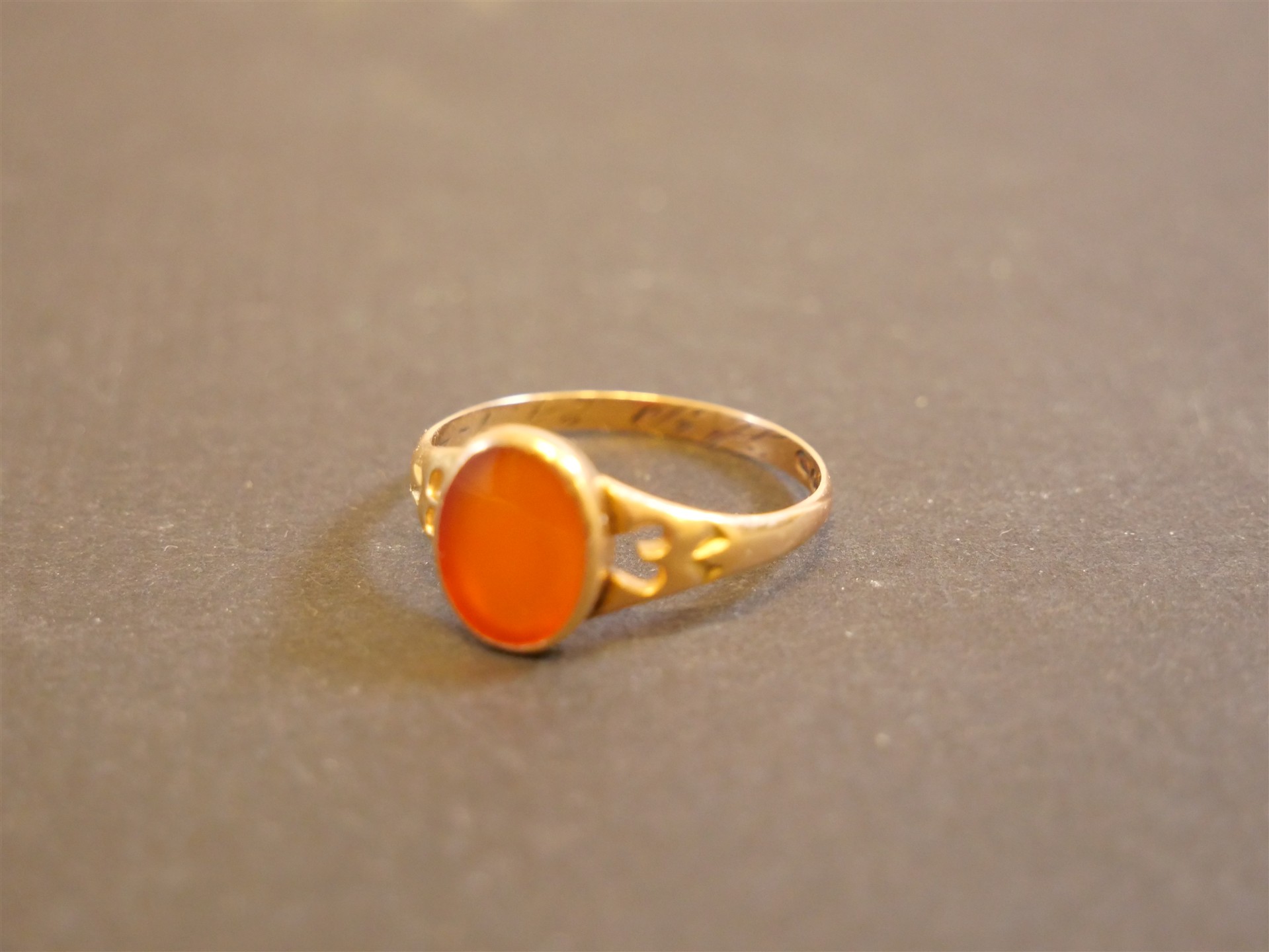 303. RING 14K med sten. Ringens mått 20 mm. Bruttovikt 2,3 gram.