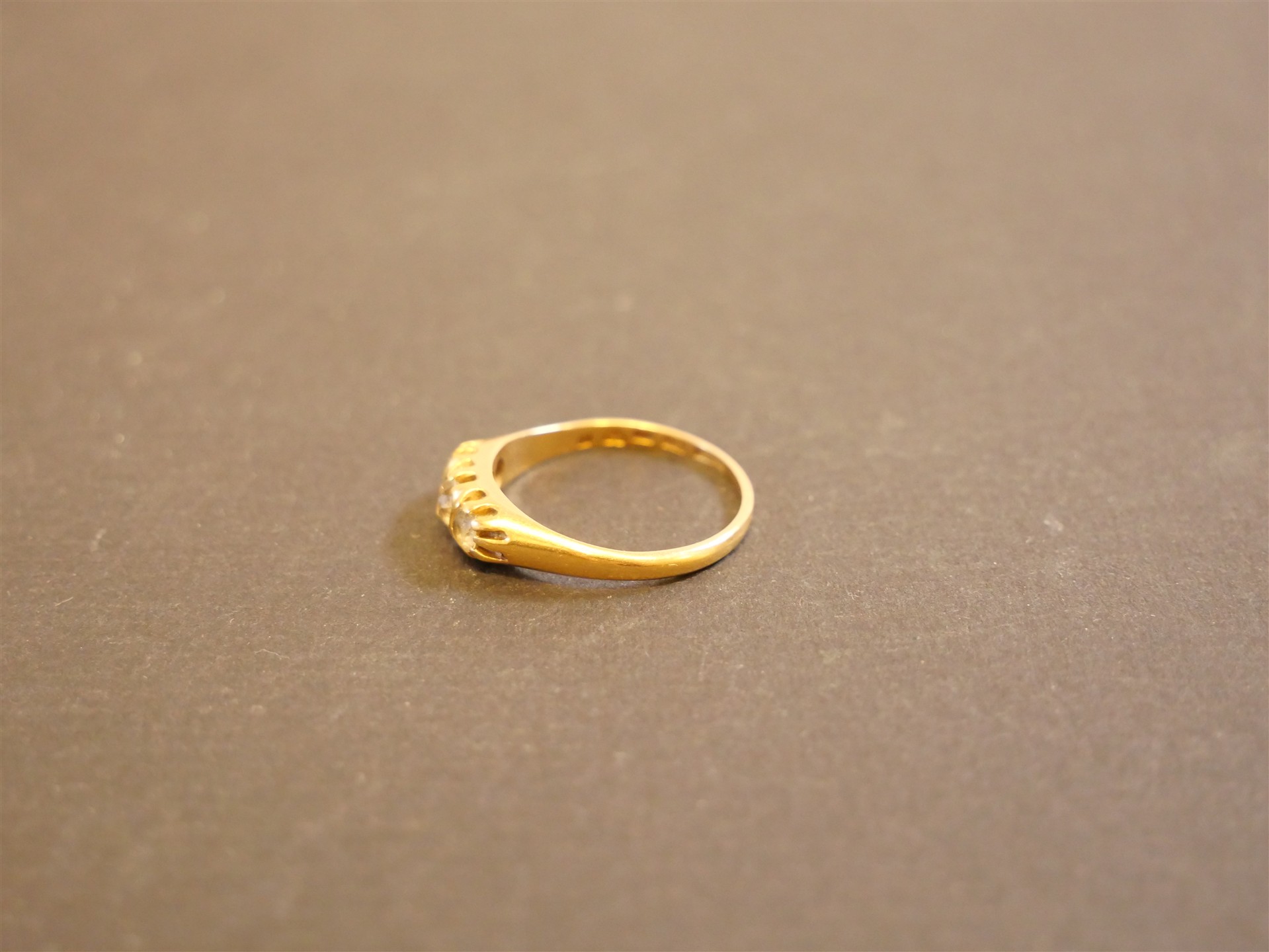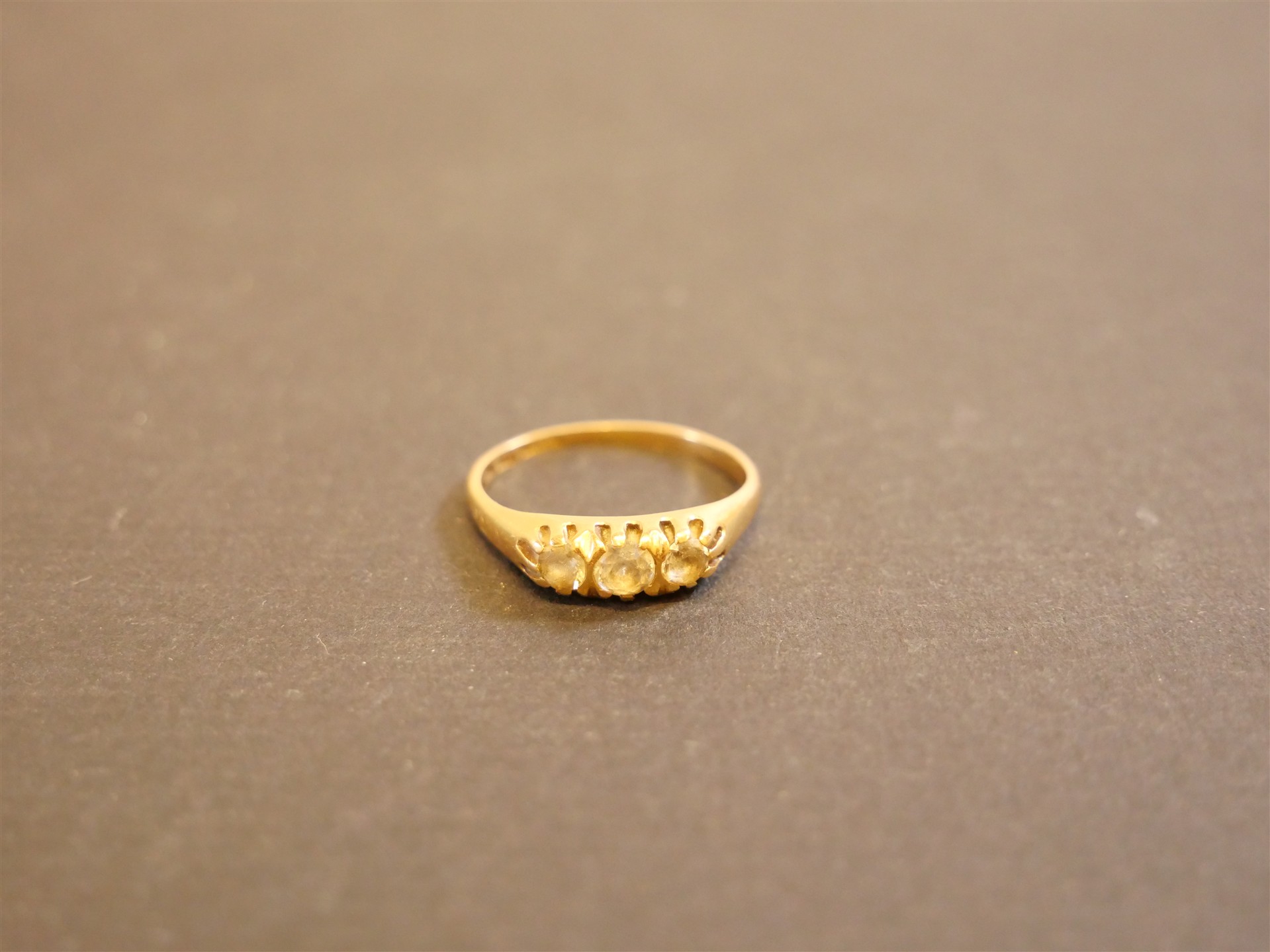 312. RING 18K med tre stenar. Ringens mått 16 mm. Bruttovikt 2,4 gram.