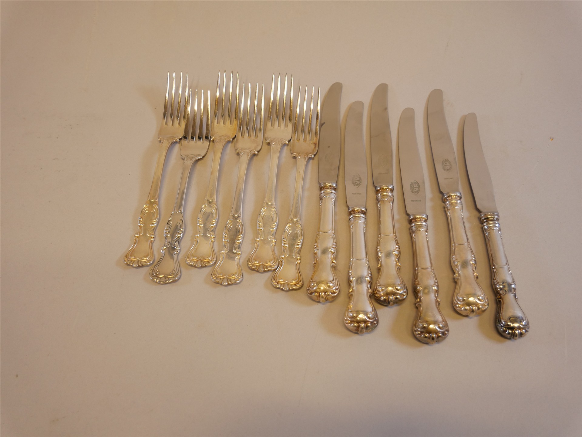 320. PRINS ALBERT. Silver. Matgafflar 6 st L 21 cm. Matknivar 6 st L 25 cm. Bruttovikt 1.109 gram.
