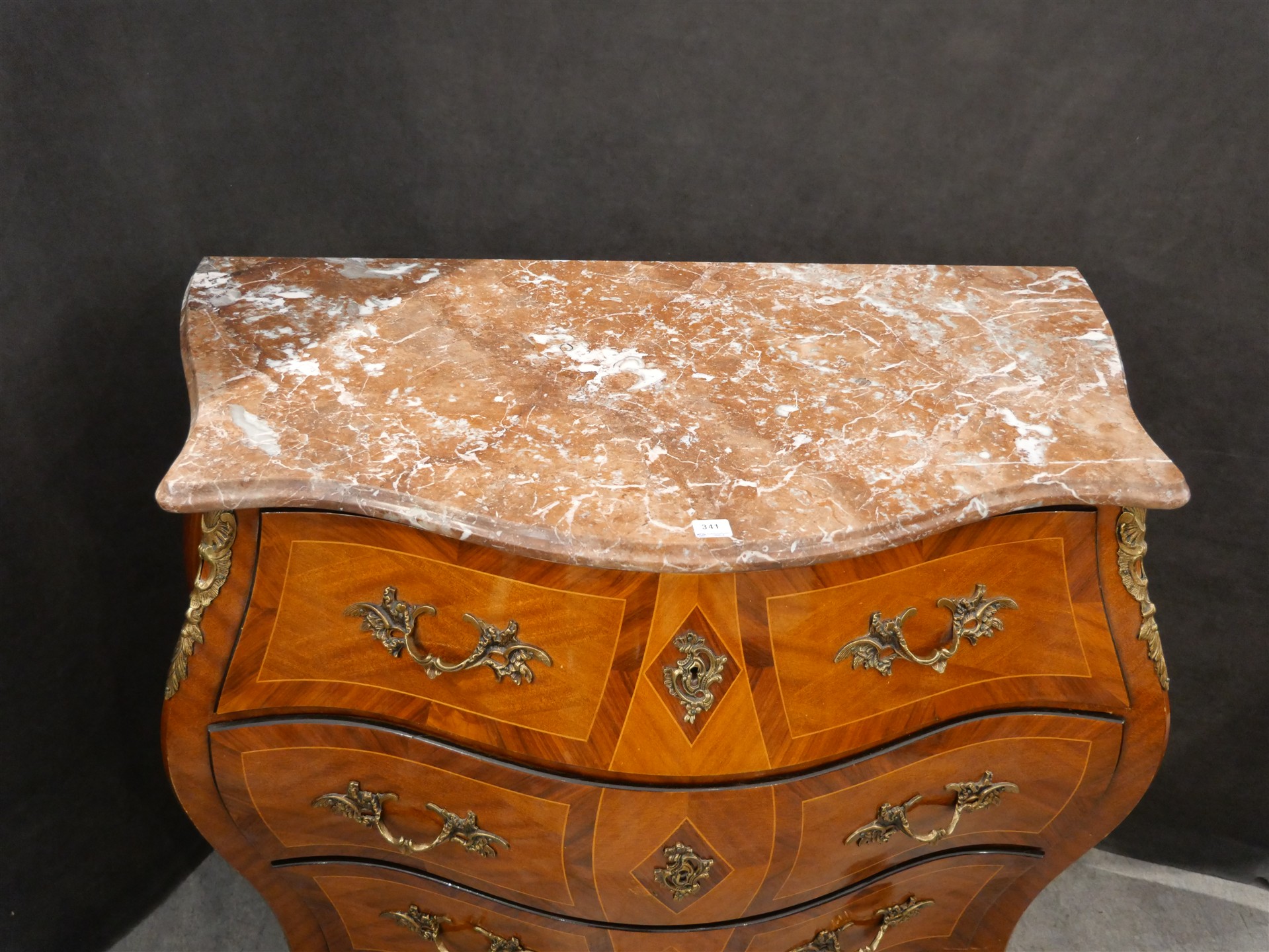 341. BYRÅ M MARMORSKIVA, nyrokokostil. H. 80 cm. B. 89 cm. Djup 47 cm.