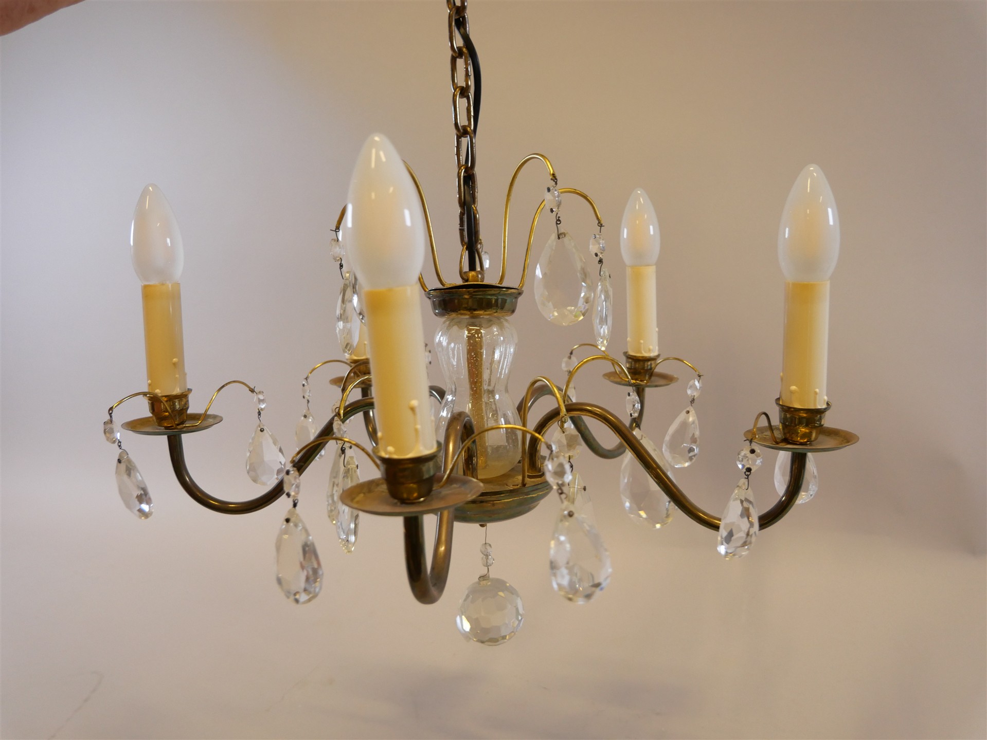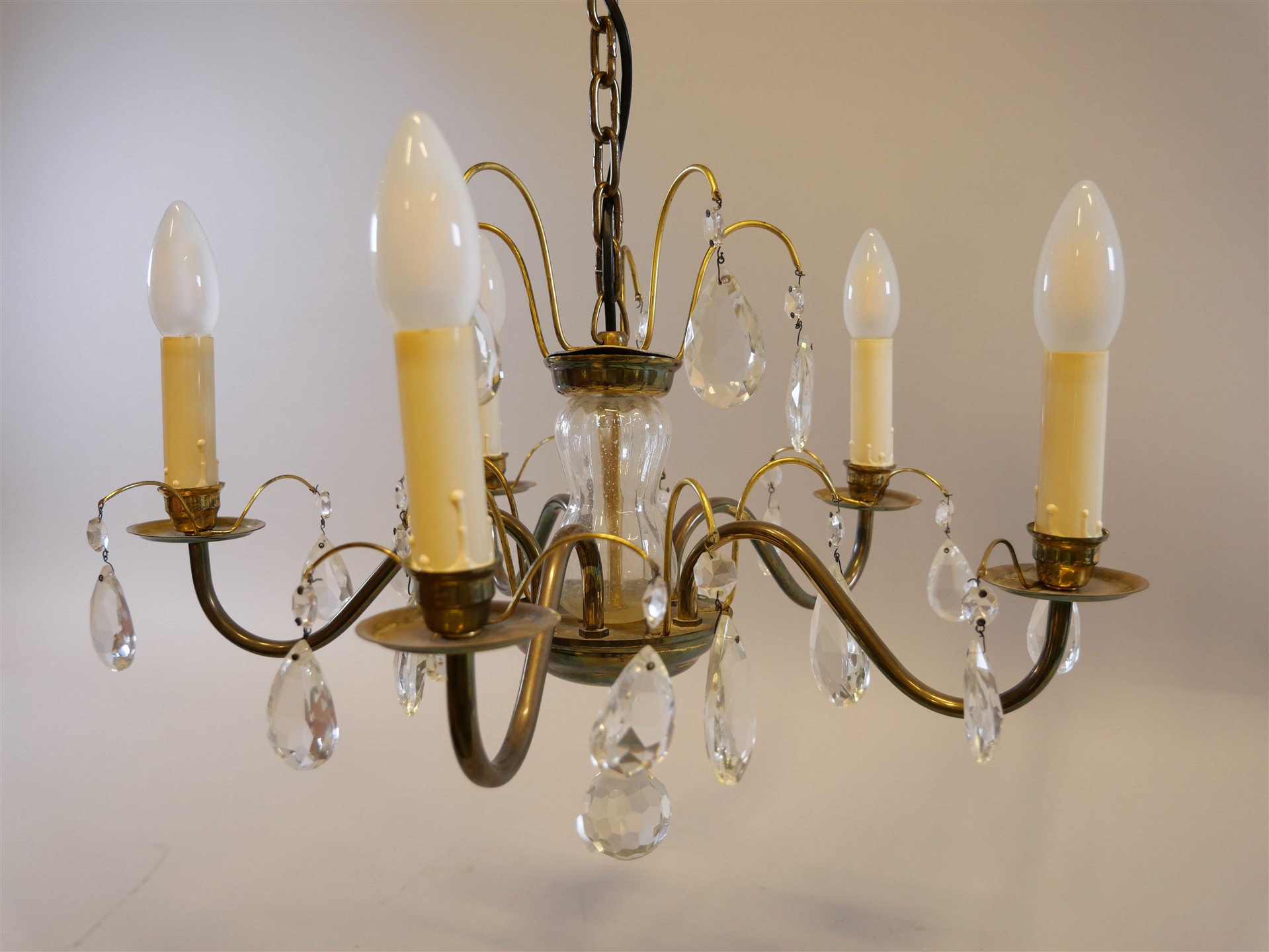 375. TAKARMATUR med prismor, 5 ljusarmar. H 60 cm.