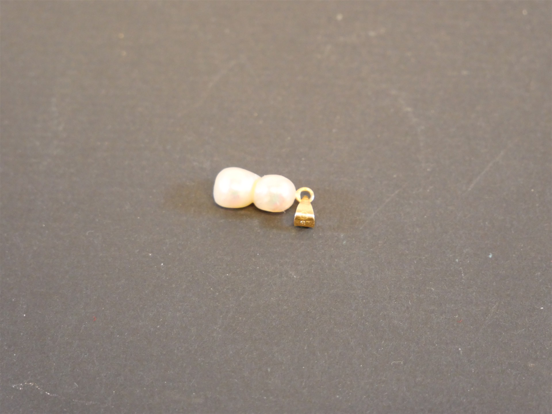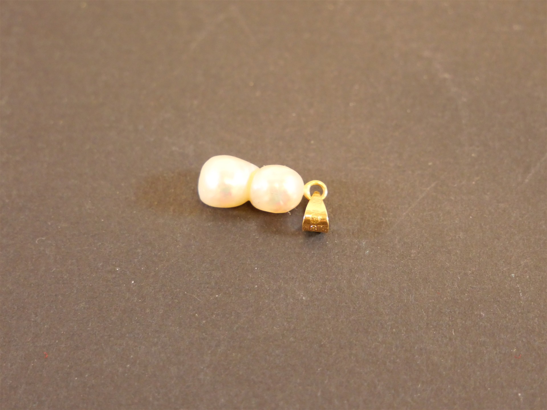 381. HÄNGE 18K med 2 pärlor. Bruttovikt 1,1 gram.