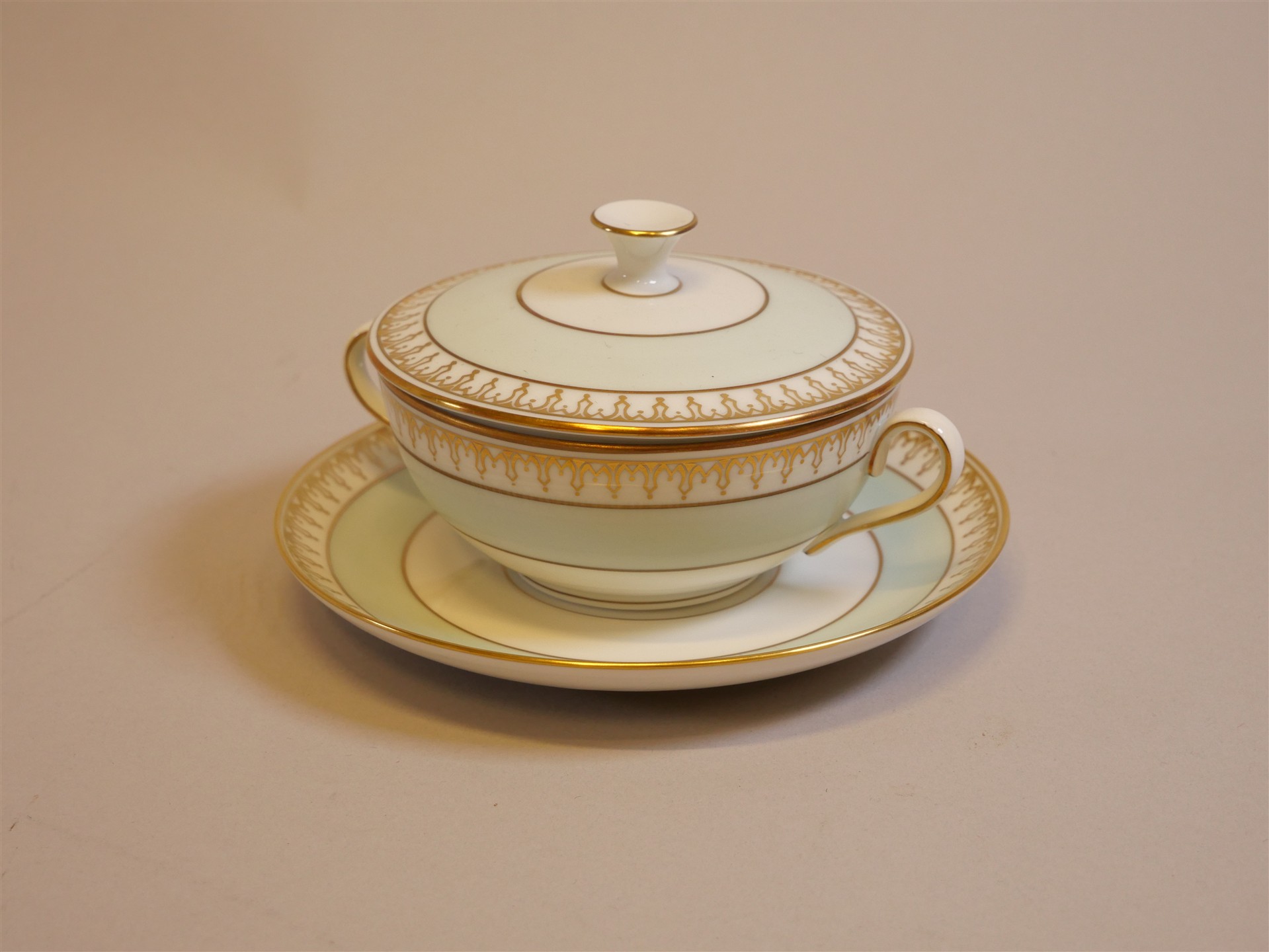 419. BING & GRÖNDAHL, "Thorvaldsen" Buljongkoppar 12 st med fat.