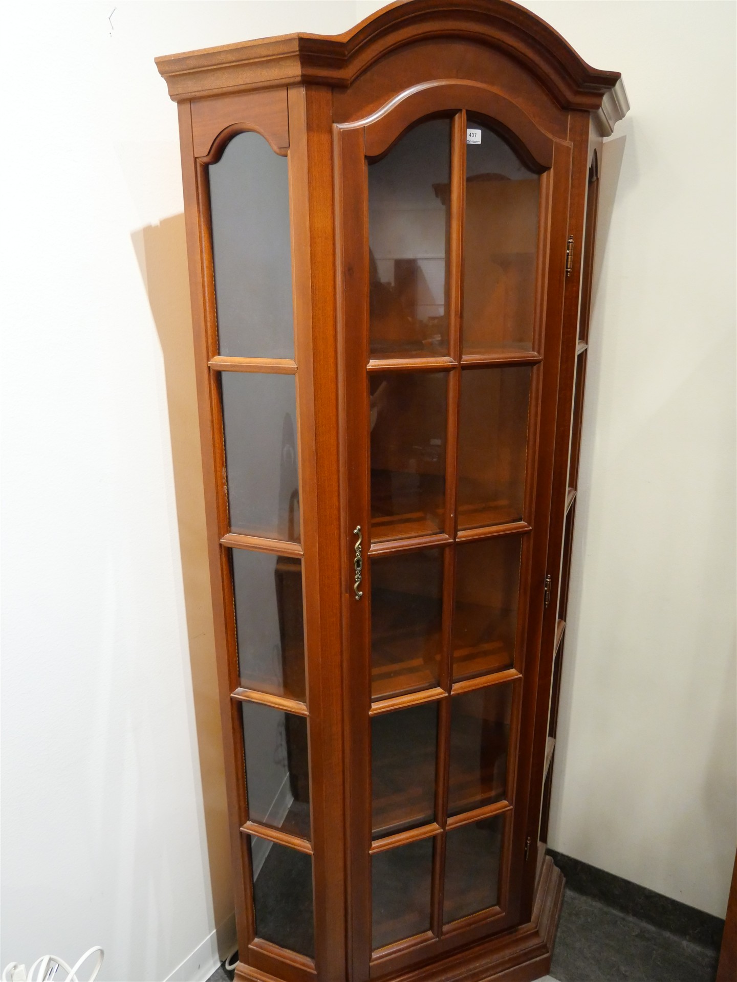 437. HÖRNVITRINSKÅP. Engelsk stil. H 187 cm. B 85 cm. Dj 55 cm.
