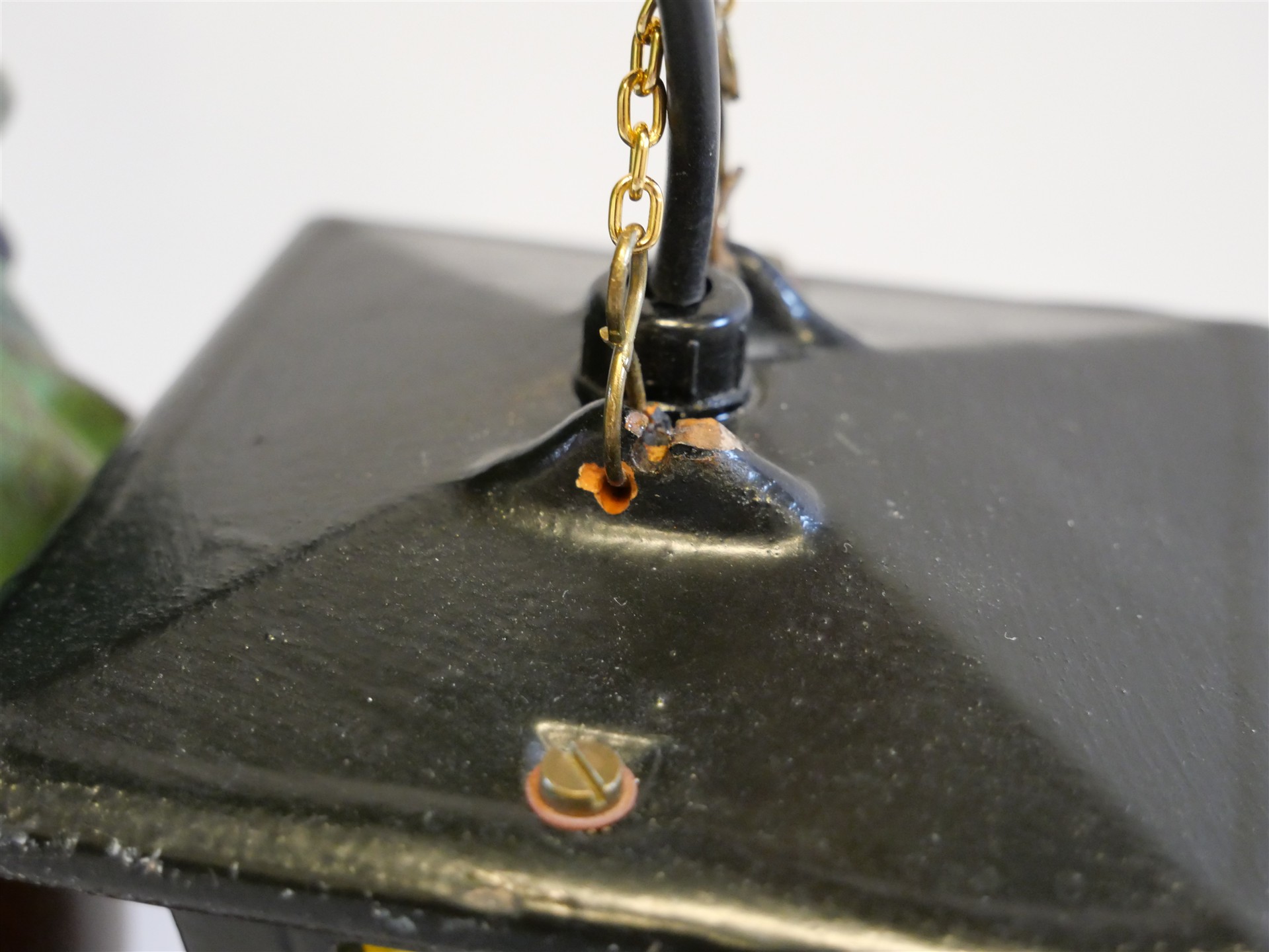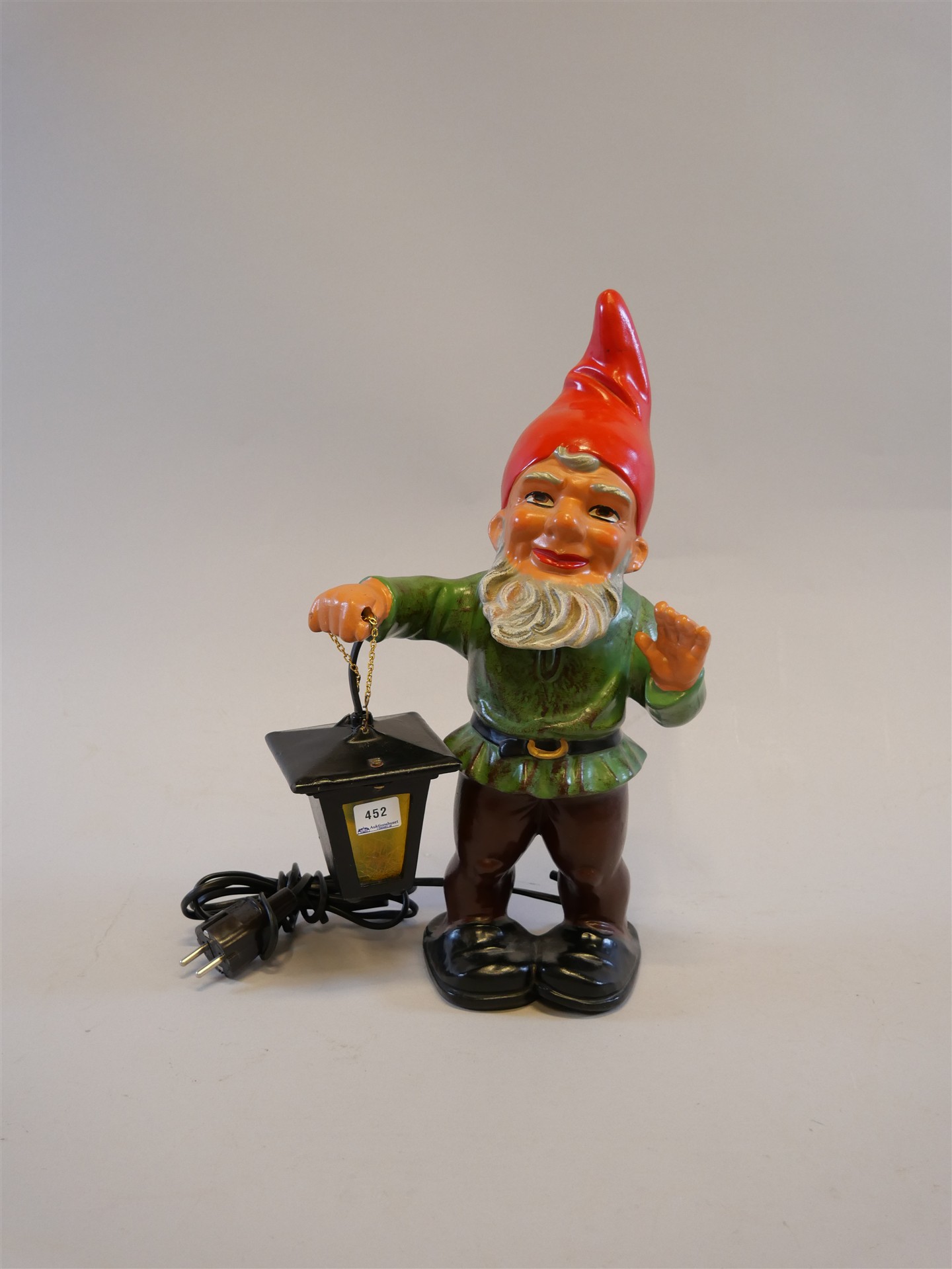 452. HEISSNER. Tomte med lykta. Lyktans fäste till kedjan defekt. H 41 cm.