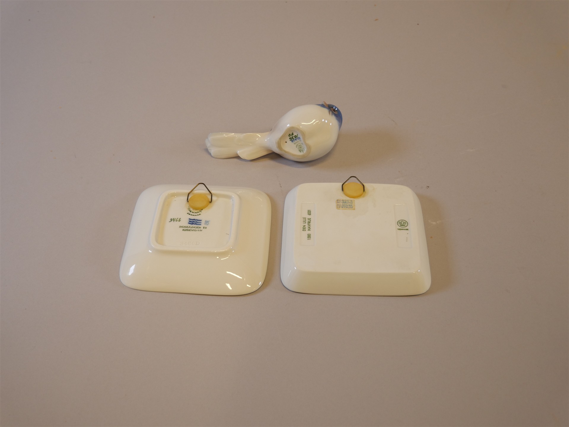 224. MINIATYRTAVLOR 2 st Royal Copenhagen & B&G 12 x 12 c,m. FIGURIN B&G H 5 cm. L 13 cm.