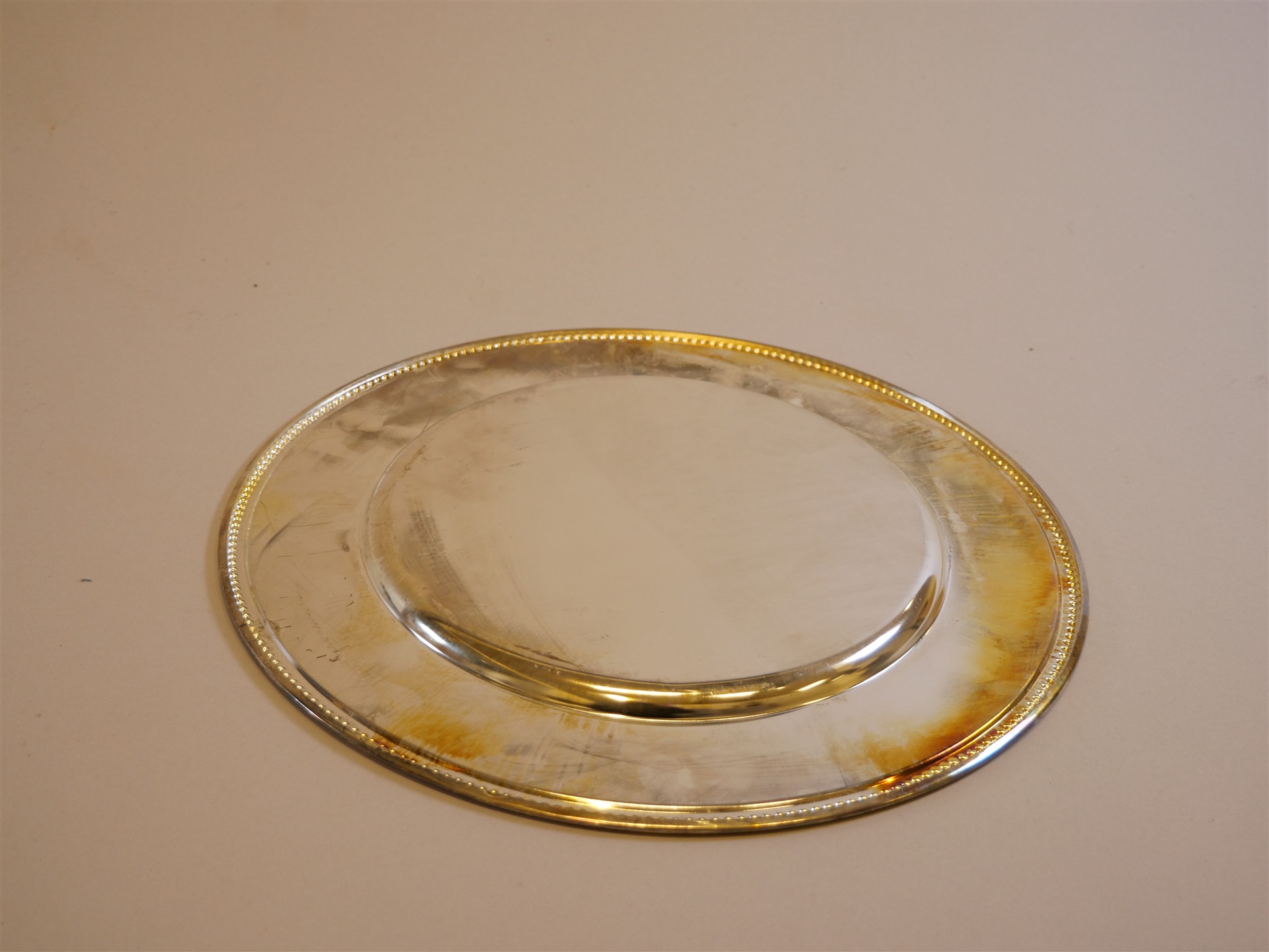 299. TALLRIKSUNDERLÄGG, 6 st, vitmetall. Diam. 30,5 cm.