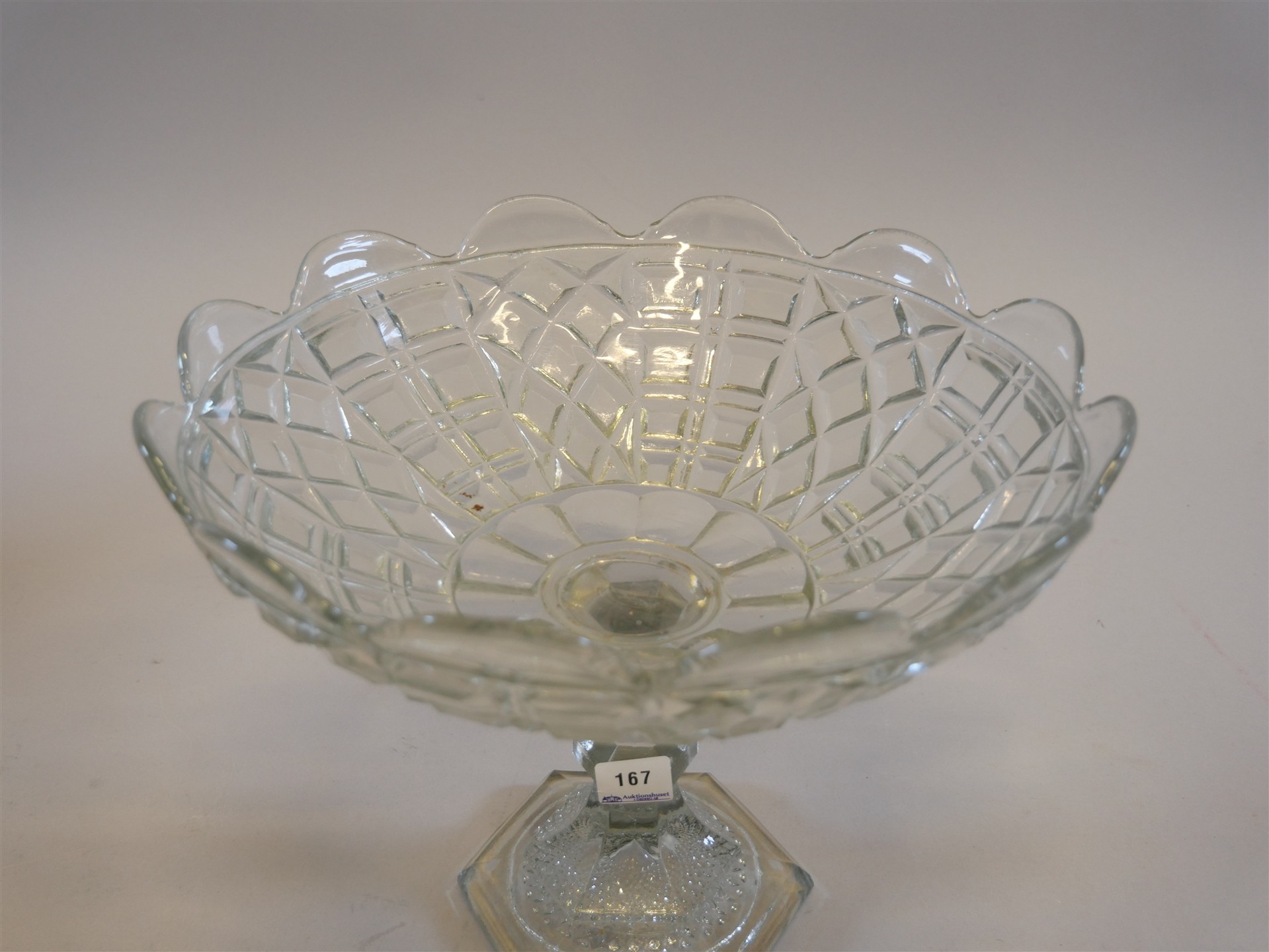 167. SKÅL PÅ FOT. Pressglas. H 23,5 cm. Diam 29 cm.