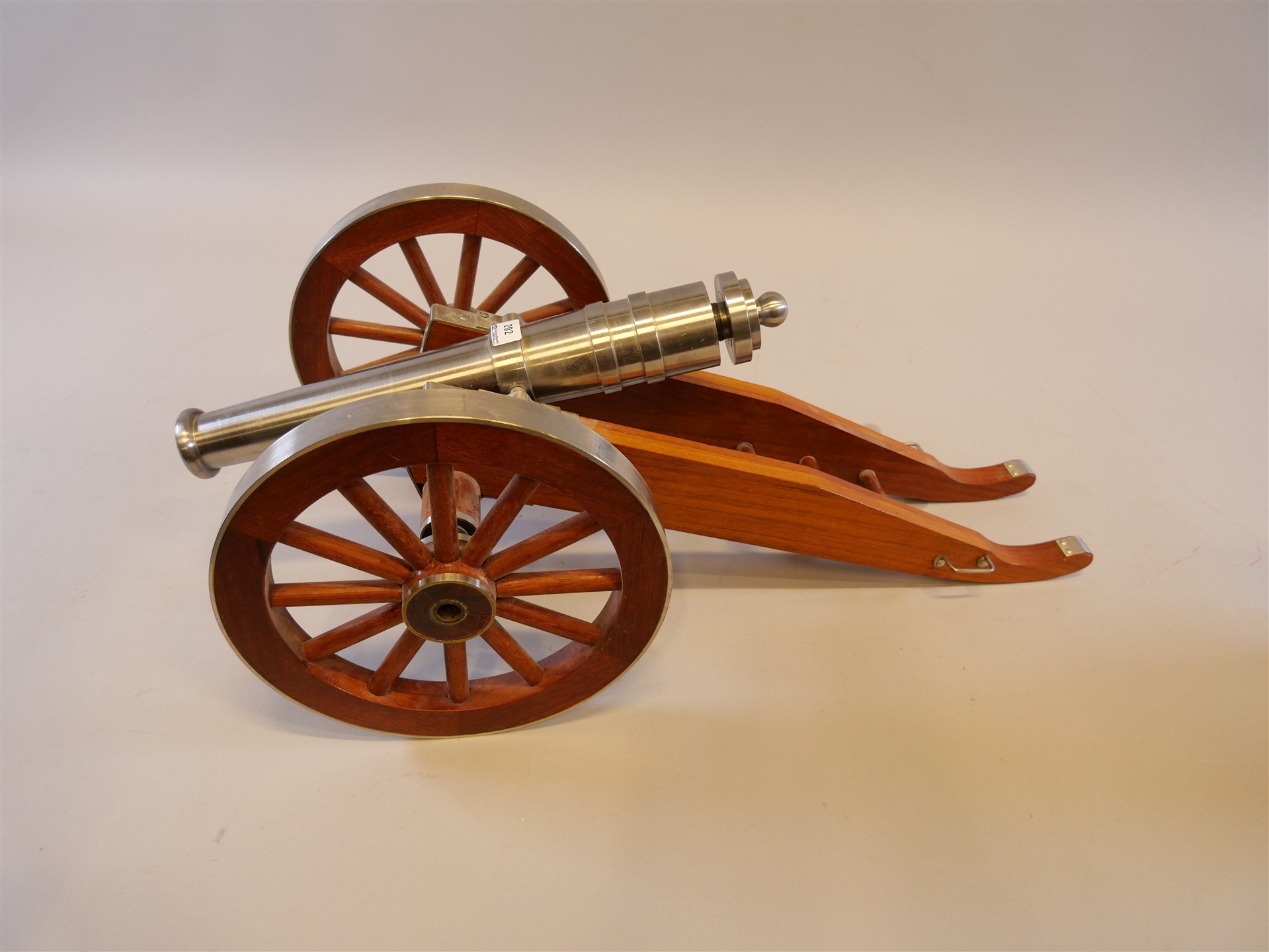 202. SALUTKANON, trä och vitmetall. L 70 cm.