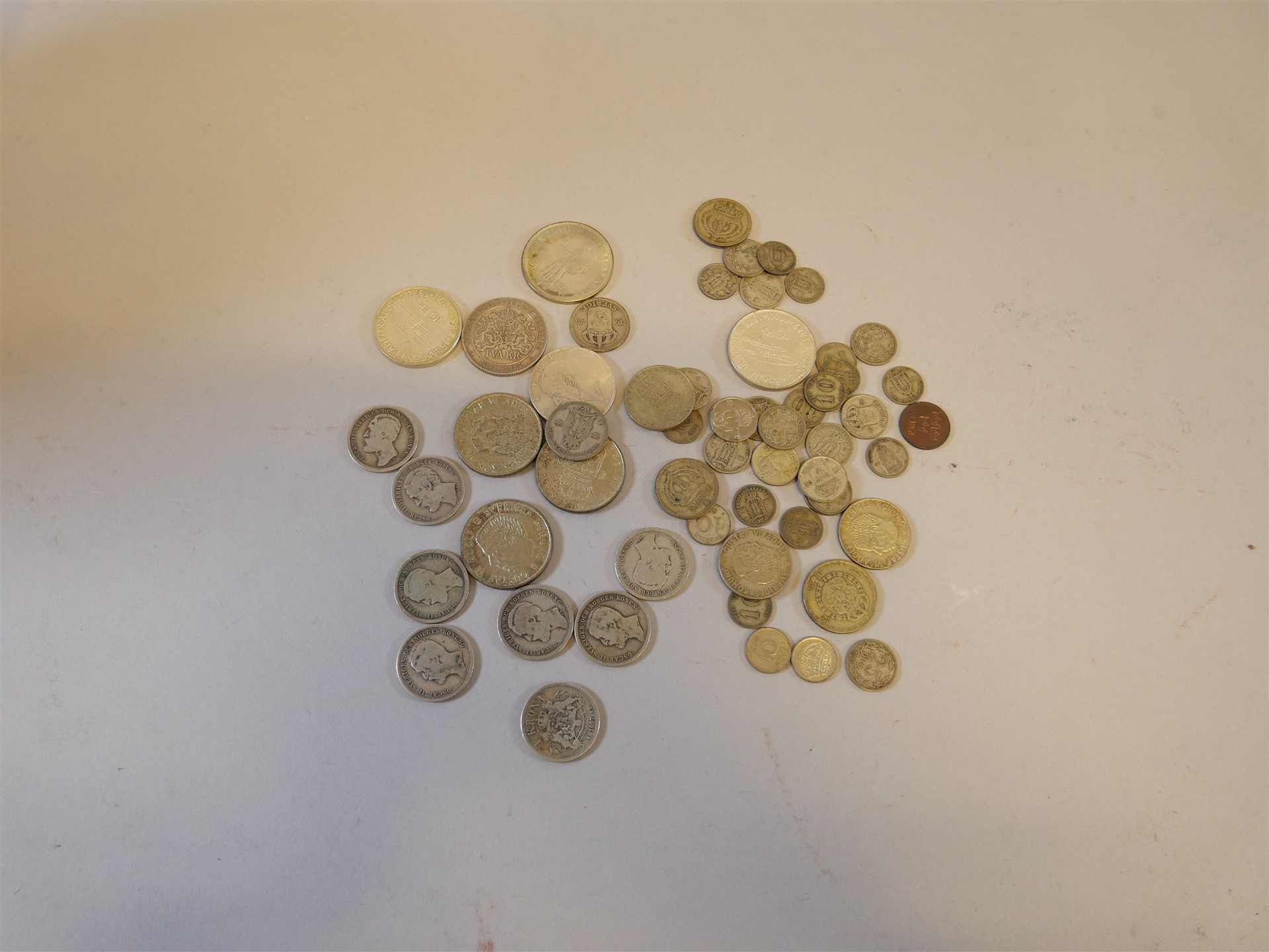044. SVENSKA SILVERMYNT. 10kr Jub 1972 (2). 5kr Jub 1962. 2kr Jub 1897. 1938. 2kr 1953- (3). 1 kr 1875-1904 (8) 1 kr 1945- (4). 50 öre (4). 25 öre -1940 (13). 10 öre (17).