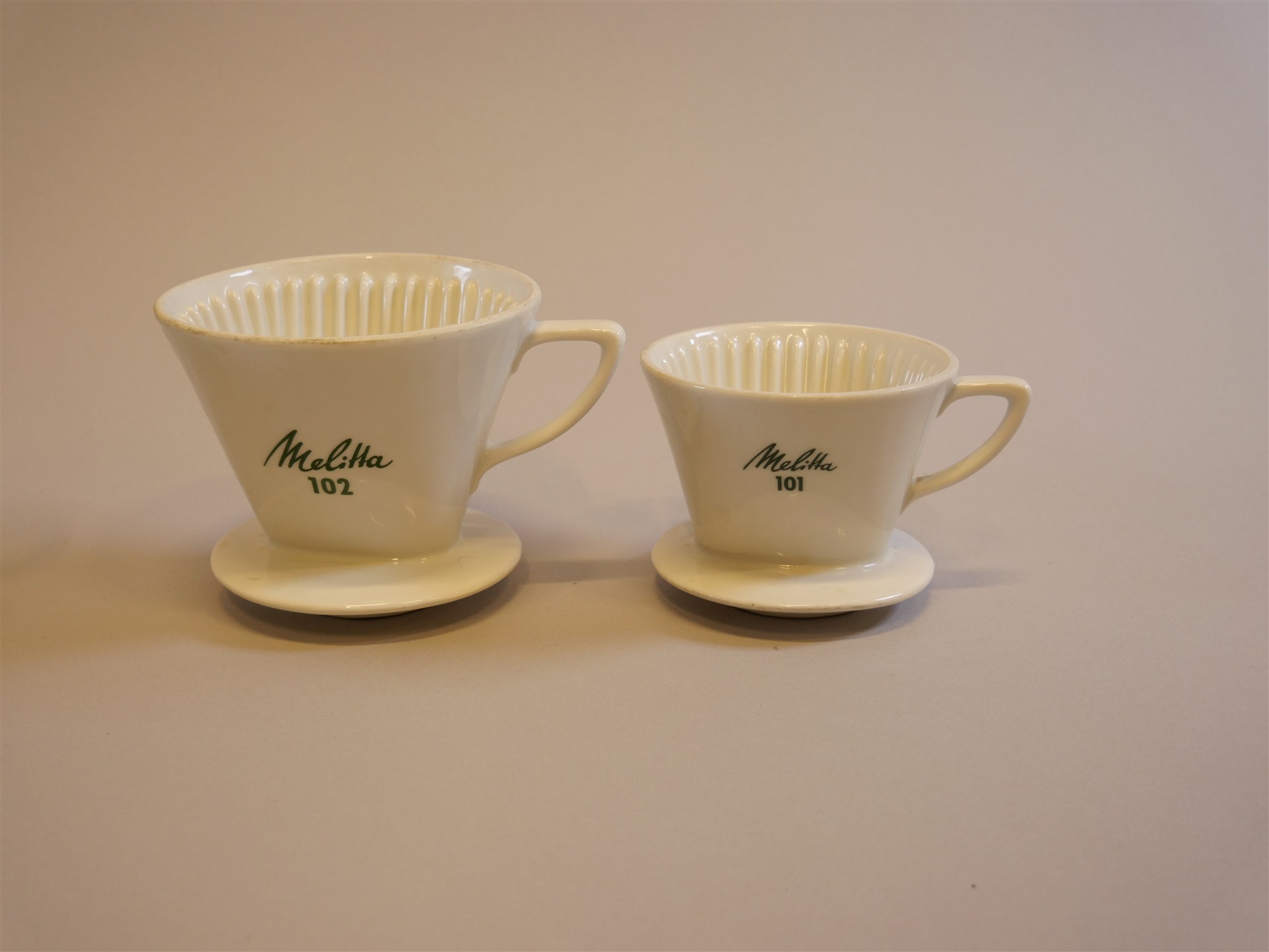 020. GUSTAVSBERG, skärbräde, något krackelerat. Filterhållare Melitta nr. 101 samt nr 102, stop Gustavsberg (krackeleringar).