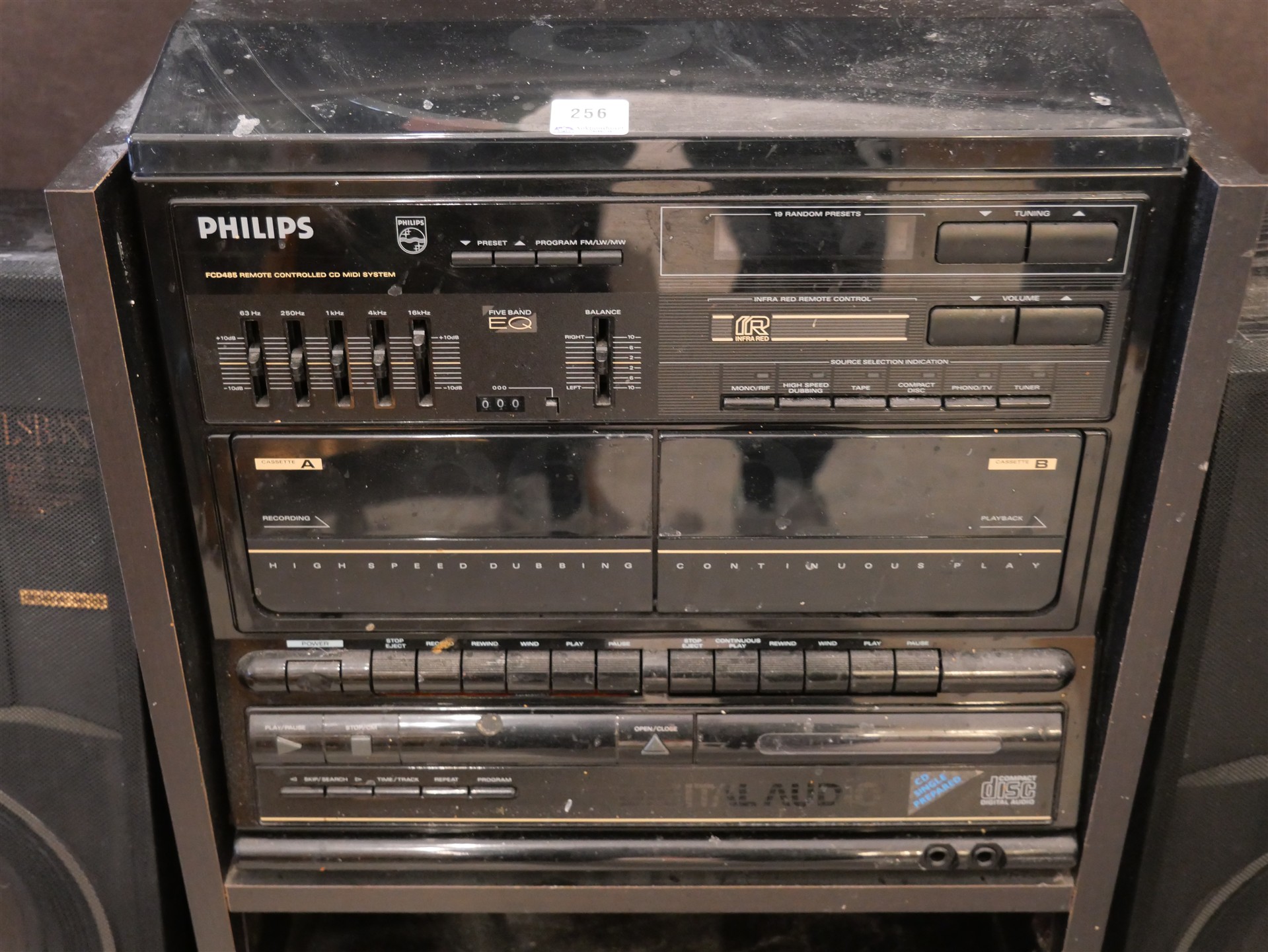 256. STEREO Philips FCD485 med rack och två högtalre (fanérskador)