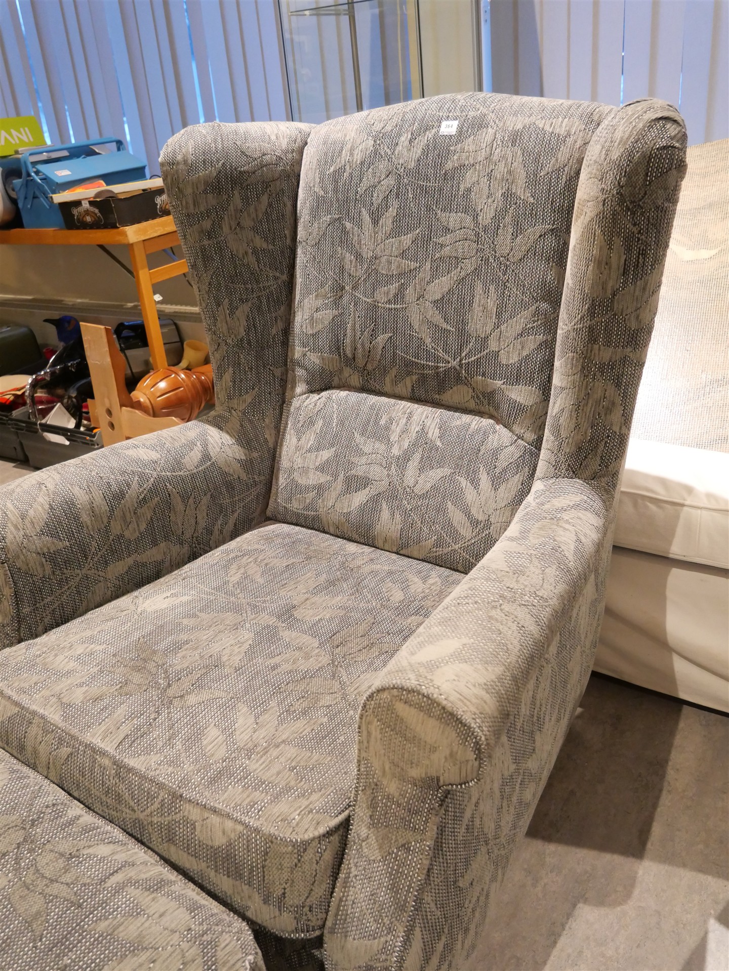 364. FÅTÖLJ M FOTPALL, brukslitage.