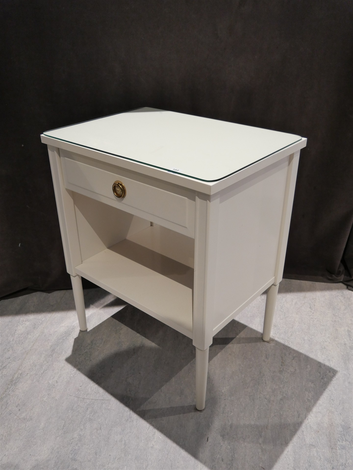 103. NATTDUKSBORD m låda. H 60 cm. B 50 cm. Dj 37 cm.
