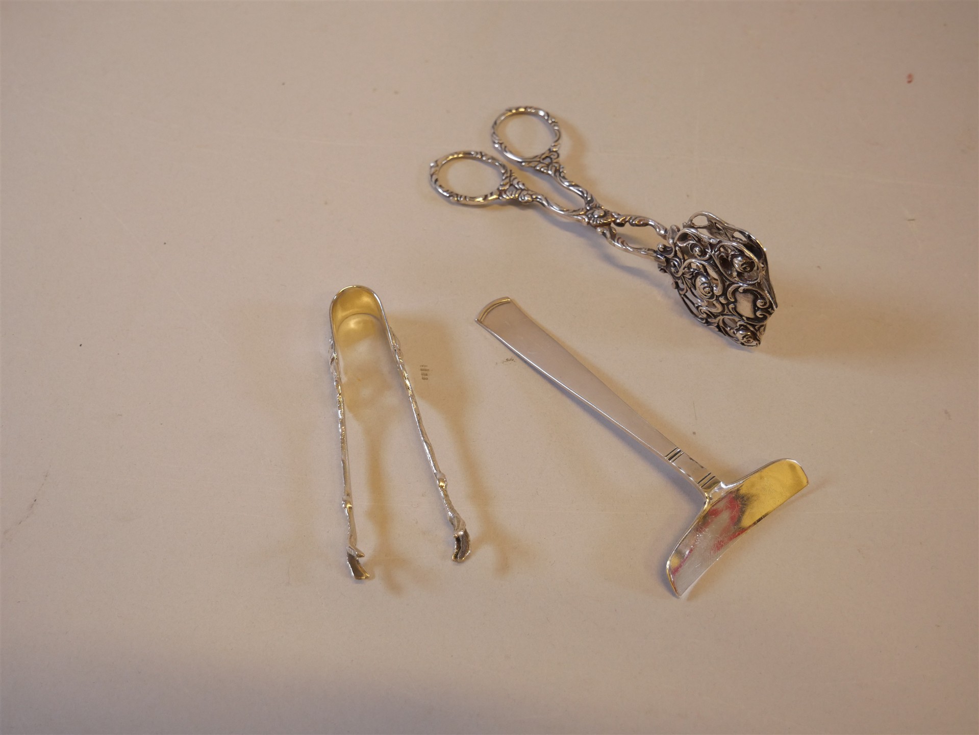 150. KAKTÅNG, SOCKERTÅNG & PÅFÖRARE Rosenholm. Silver. Vikt 68 gram.