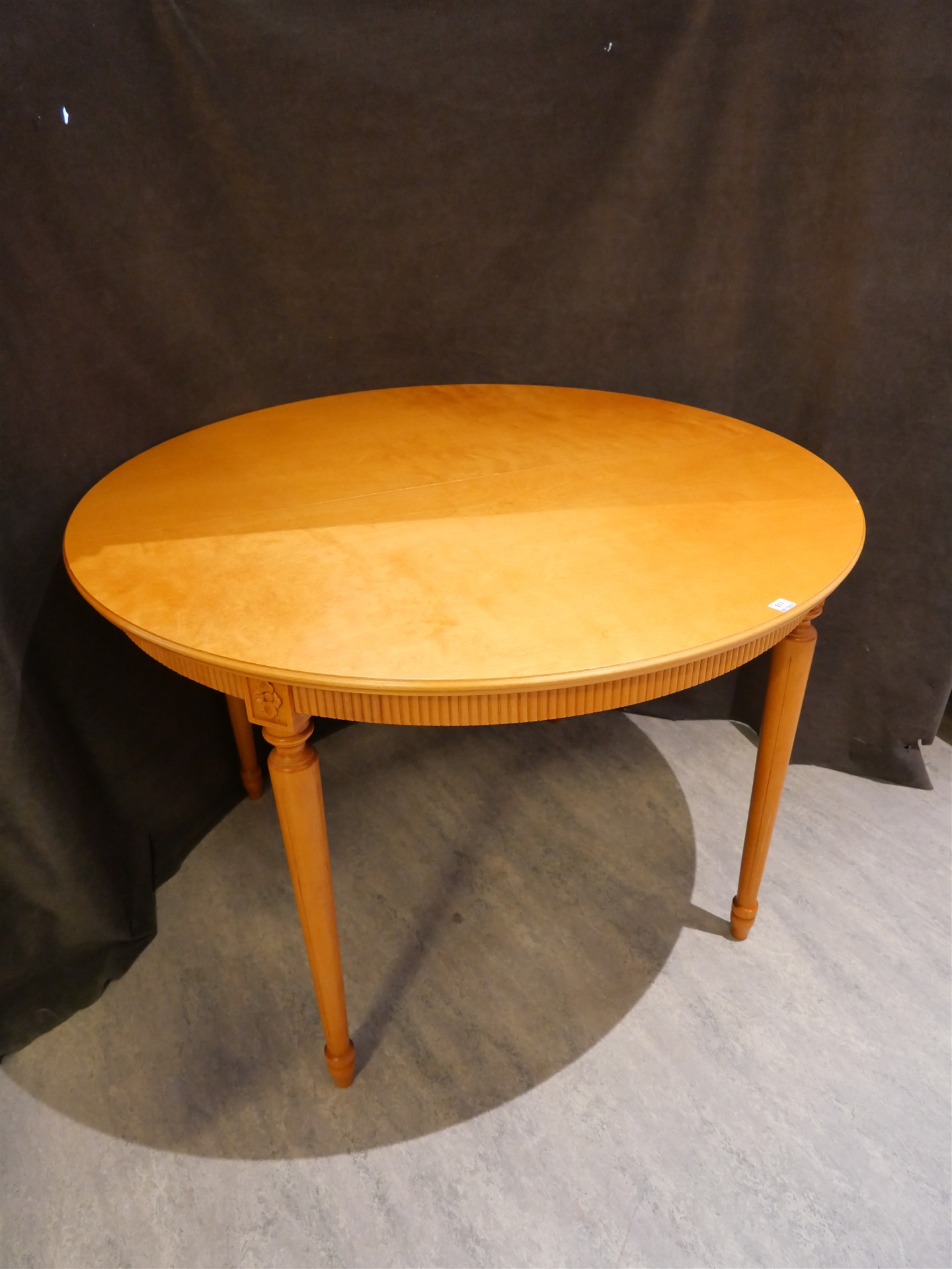 017. MATSALSBORD m två iläggsskivor 2 x 48 cm. Gust.stil. H 74 cm. Diam 109 cm.