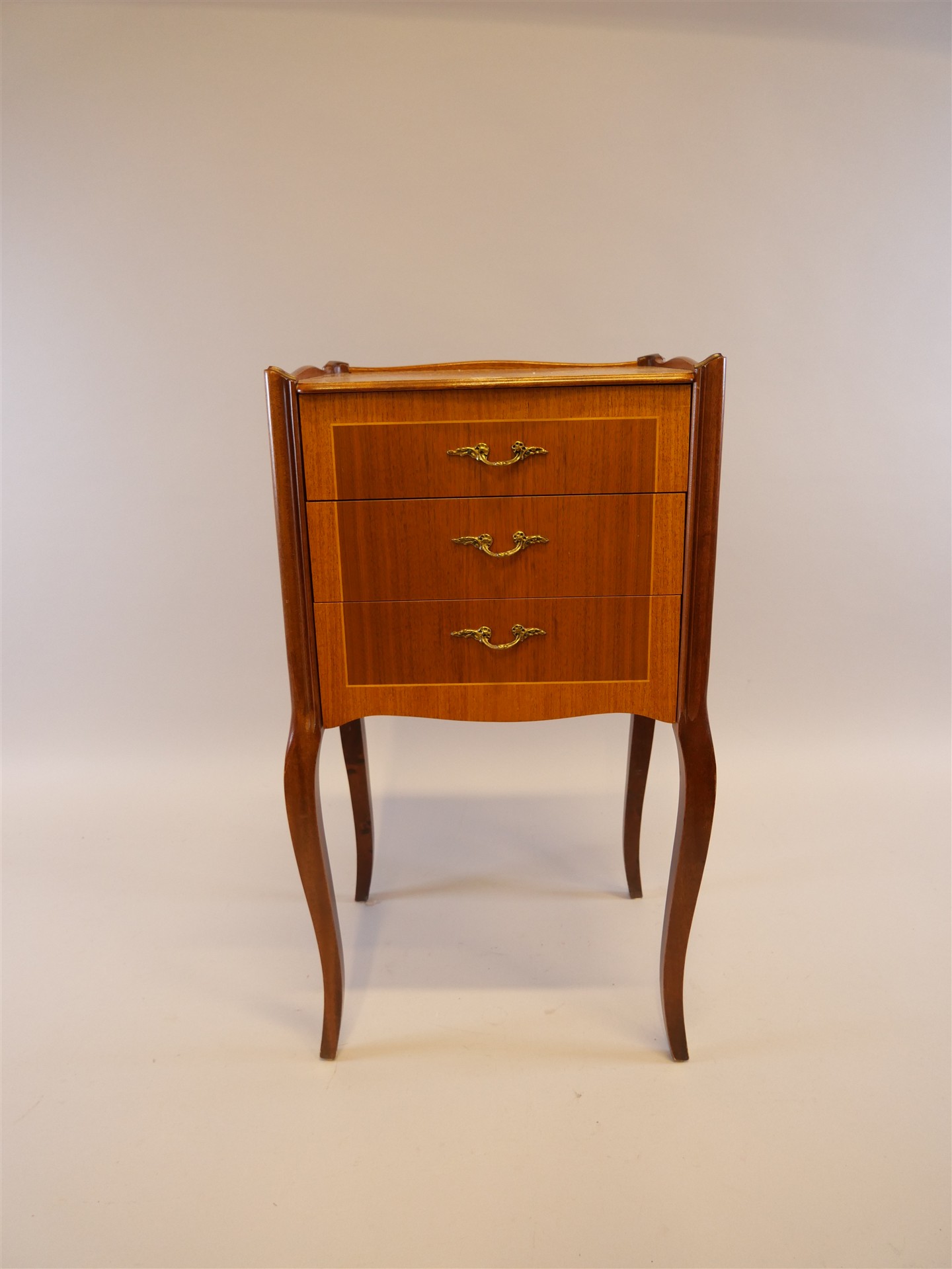 025. BYRÅ 3-lådig, något solblekt. H 71 cm. L 38 cm. B 31 cm.