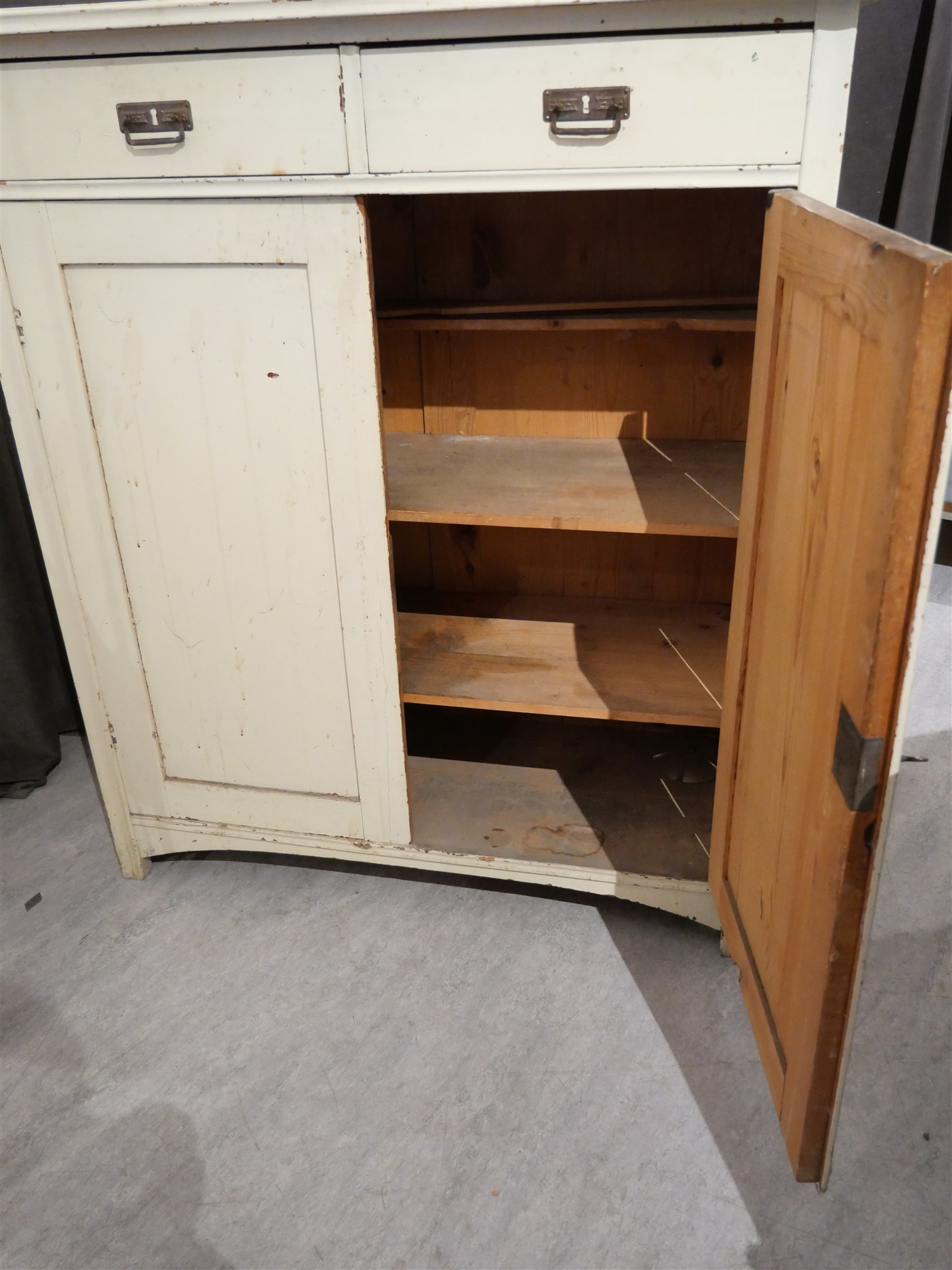 402. SKÄNK, 1900-talets första hälft. Spricka på en av sidorna. Färg sliten. H. 118 cm. B. 103 cm. Djup 41,5 cm.