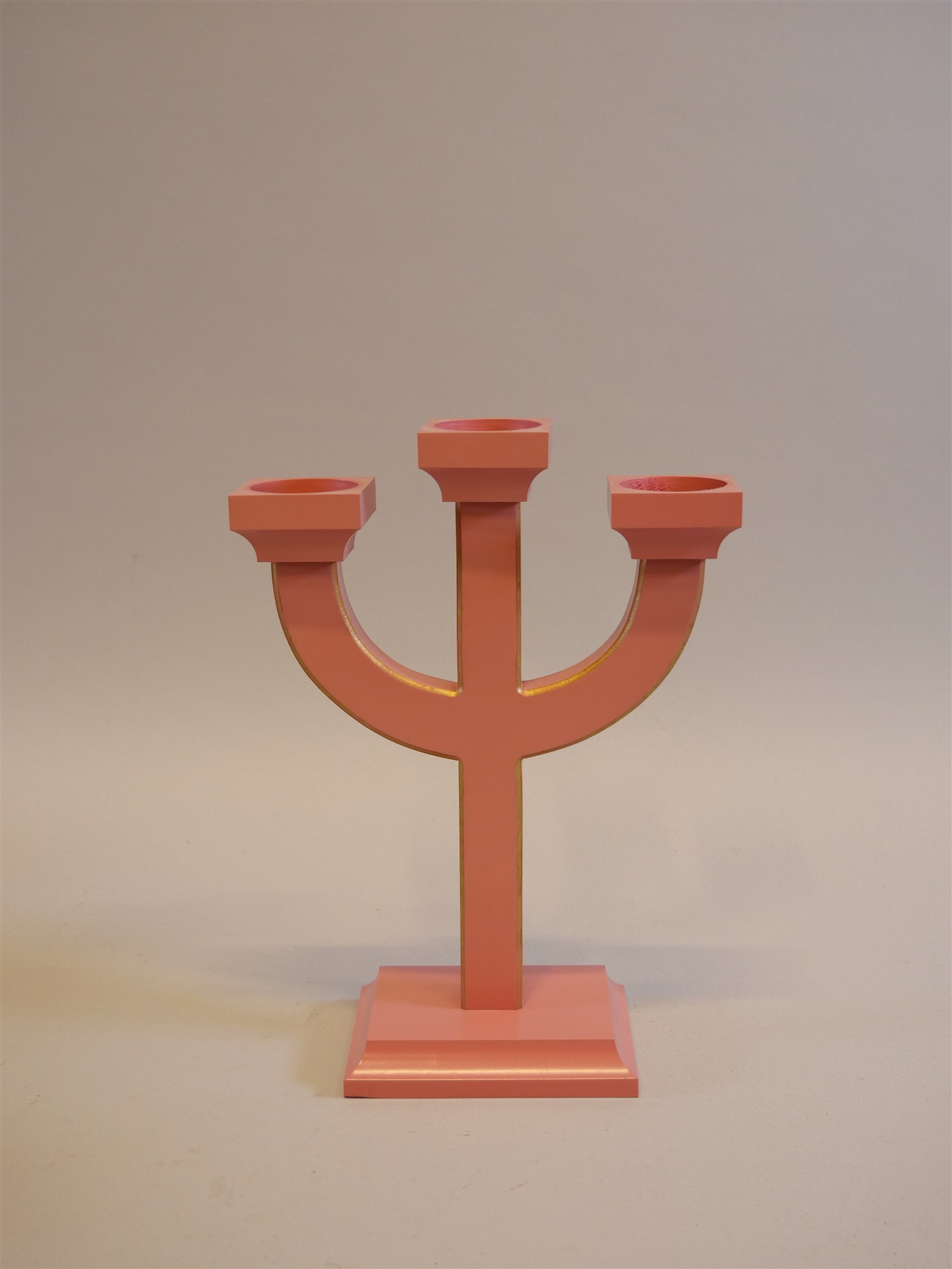 059. LJUSSTAKE, 3-armad, trä. H 34 cm. B 25 cm.