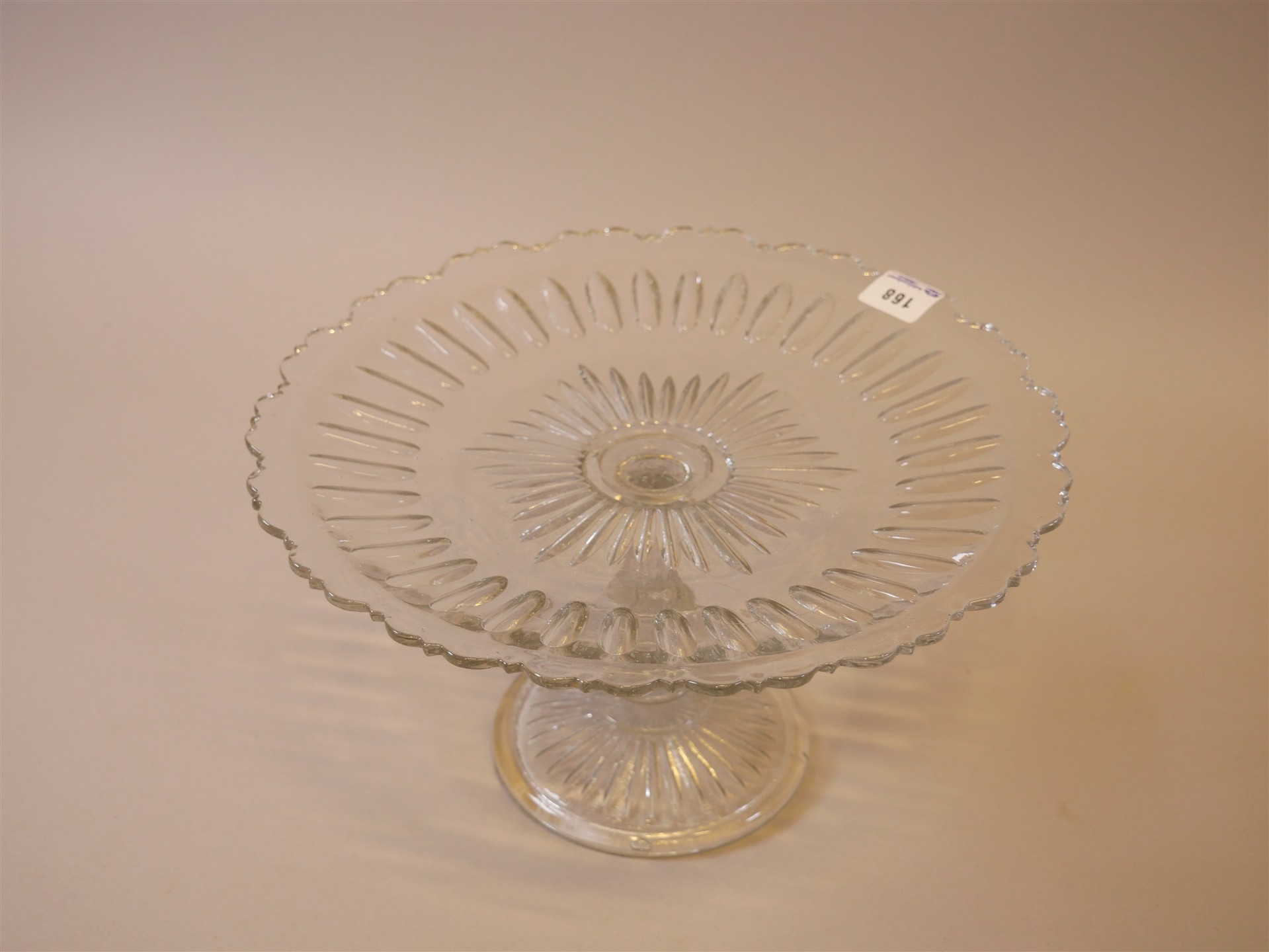 168. FAT PÅ FOT, pressglas. H 15,5 cm. Diam 26,5 cm.