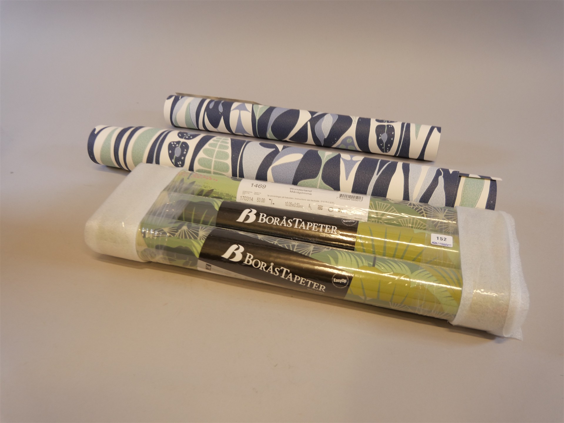 152. TAPETRULLAR, 3 st, "Mårdgömma", Boråstapeter, mm.