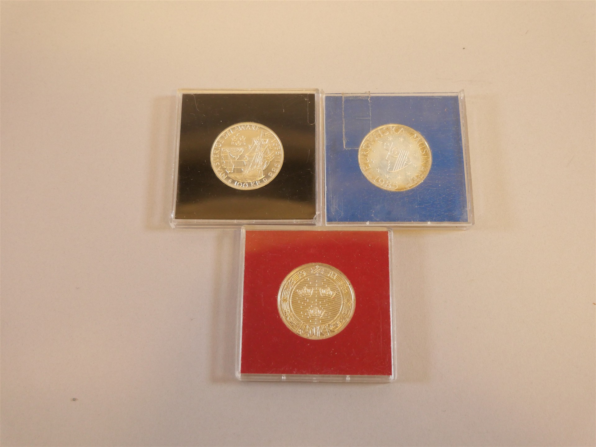 023. JUBILEUMSMYNT SVERIGE. Silver 925. 100 kr 3 st.1983, 1985 & 1988.