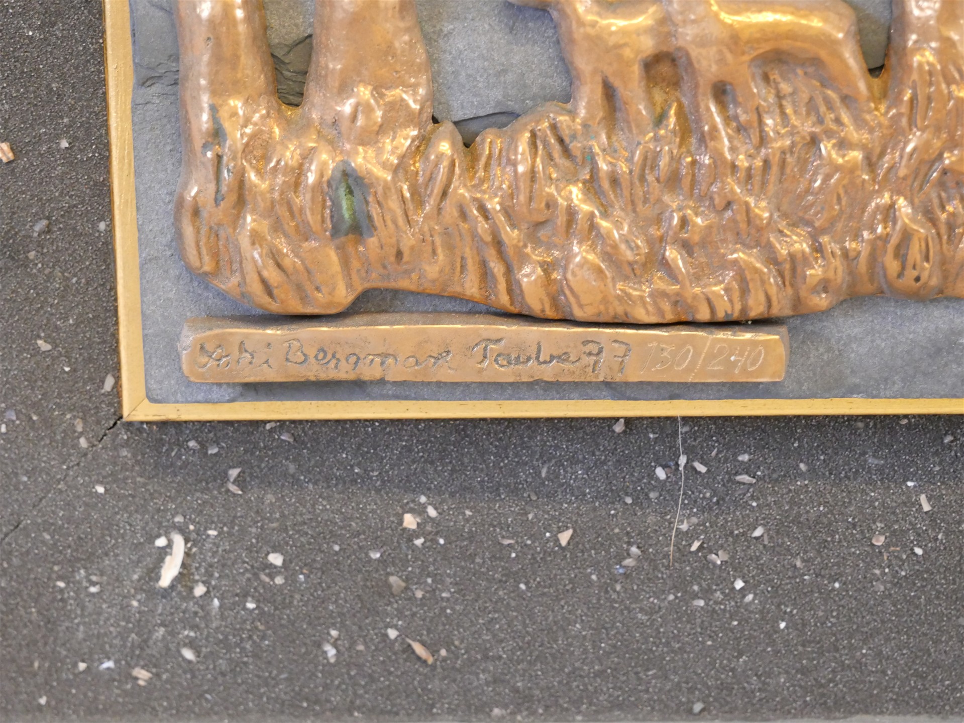 299. ASTRI BERGMAN-TAUBE. Bronsrelief på skiffer. Signerad 130/240. Ca 35 x 35 cm.