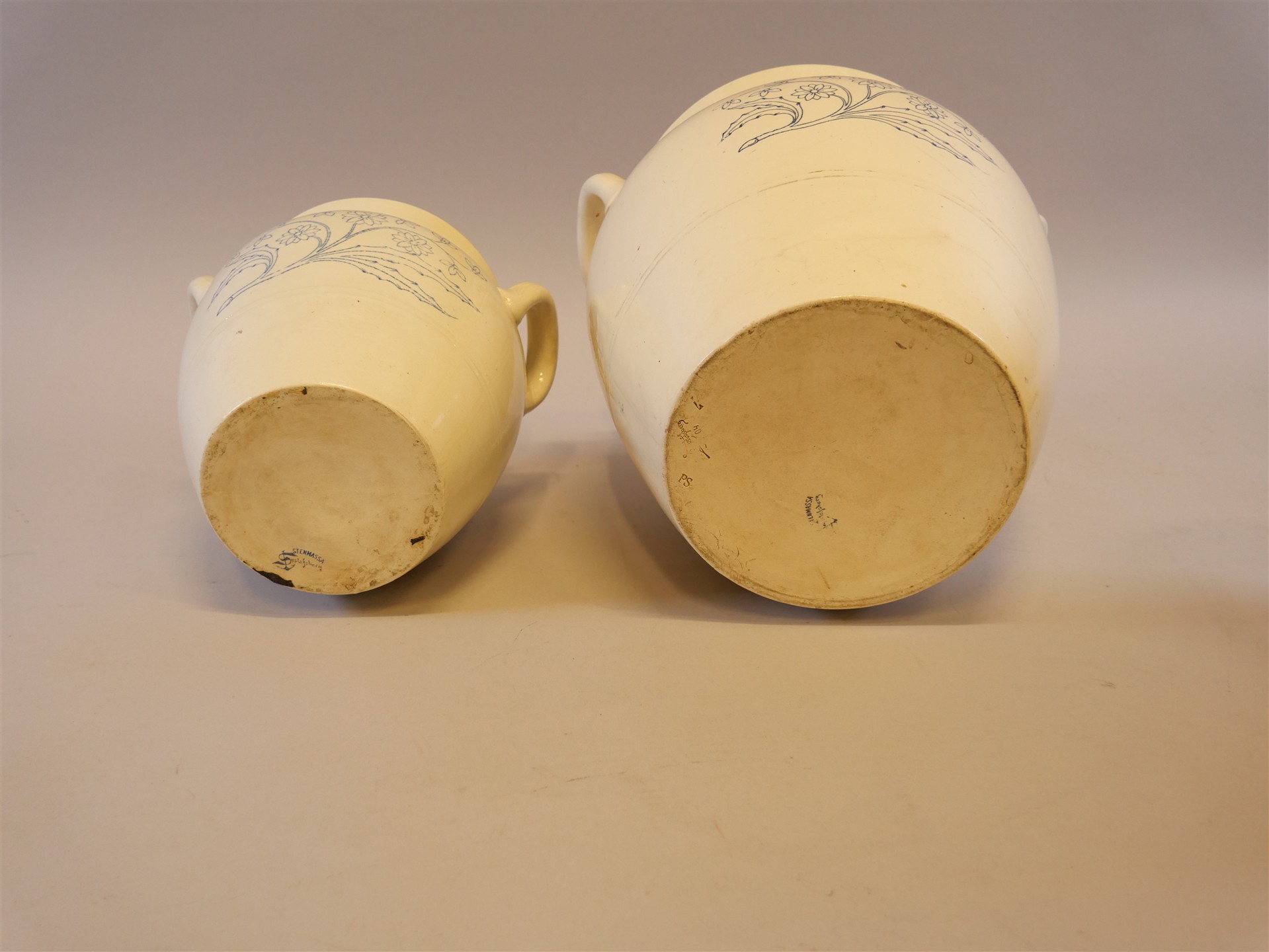 162. BLÅ/VITA KRUKOR 2 st, Gustafsberg. H 33 resp 24 cm.