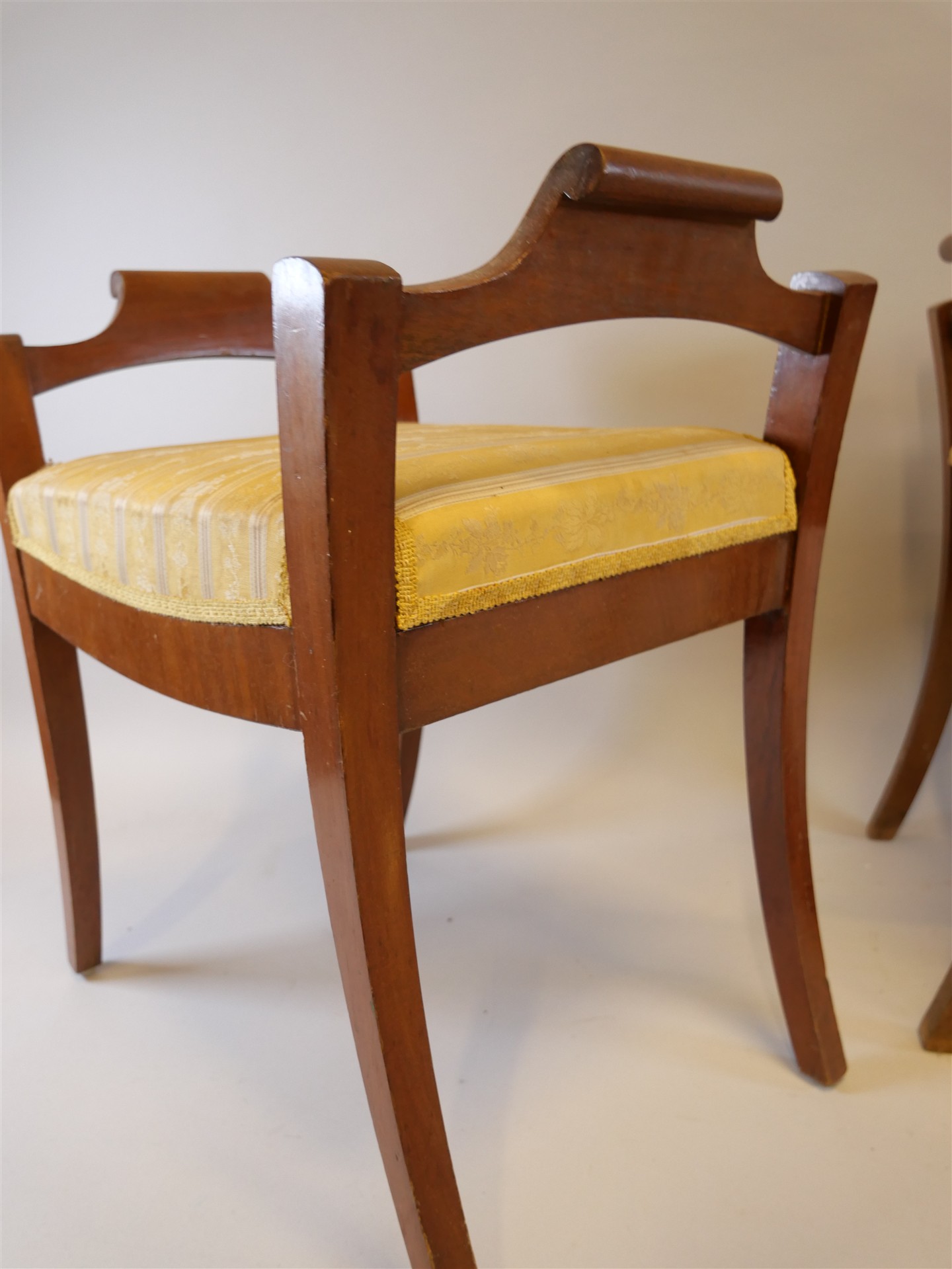 199. BANKETTER, 1 par, K-J. Klädsel med fläckar. Sitthöjd 45 cm. L. 52 cm. B. 37 cm.