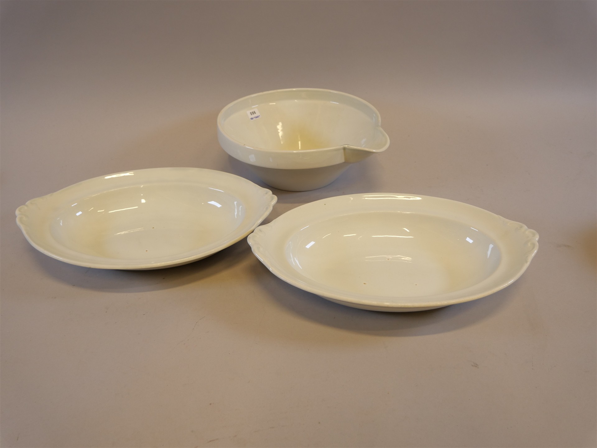 096. SPILLKUM. H. 11 cm. Diam. 27,5 cm. Uppläggninsfat 2 st. L. 37 cm.